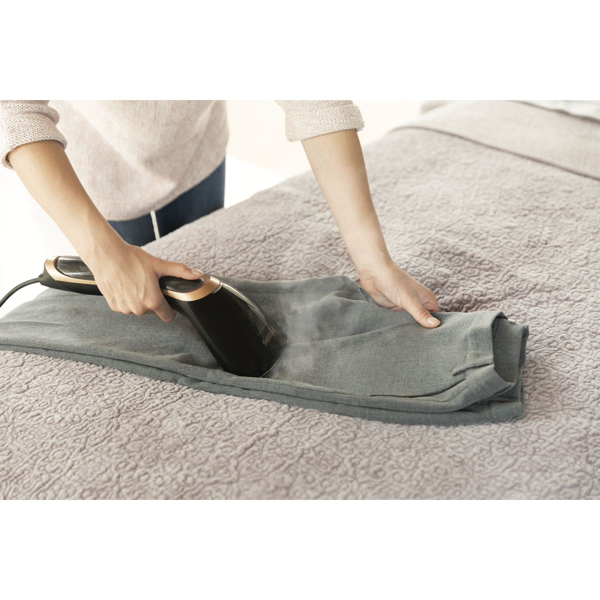 Ease into a wrinkle-free lifestyle with the Philips Smartflow GC362/80 Handheld Garment Steamer. This portable steam station delivers powerful steam for quick touch-ups and freshening fabrics on the go. The innovative SmartFlow heated plate creates better steam distribution for fast even results across all garments. With 24 grams of steam output per minute and a 1300W heating element this handheld steamer makes short work of wrinkles and creases in no time. The generous 70ml detachable water tank allows longer continuous steam time between refills. At 250cm the lengthy power cord provides the flexibility to steam clothes right on hangers. The storage bag heat protective glove and fabric brush ensure safe handling and care. Give garments a quick pick-me-up with the Philips Smartflow GC362/80 Handheld Garment Steamer. Seamlessly remove wrinkles on clothes curtains and more with this portable steaming powerhouse. The manufacturer's part number for this product is GC362/80.