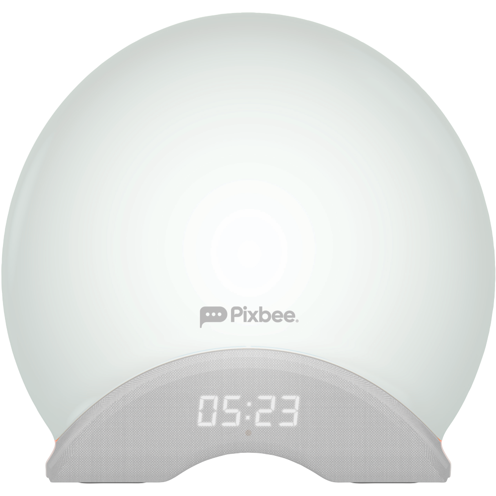 Wake up refreshed and energized with the Pixbee Alarm Clock Smart Wake Up Light. This innovative alarm clock mimics a sunrise to gently wake you up transforming night into day through its soft glow that brightens from a warm candlelight to bright sunshine over a 20-30 minute period. With its modern LED technology and wide colour range from 2000K to 4000K the Pixbee creates the perfect environment to start your day feeling positive and productive. Compatible with iOS 9.0+ and Android 5.0+ this smart lighting alarm clock can be controlled remotely via Wi-Fi and your mobile device. It also works seamlessly with voice assistants like Amazon Alexa and Google Assistant for hands-free operation. The Pixbee light alarm clock features a long-lasting 25000 hour bulb and 1 year manufacturer's warranty for peace of mind. With its bright 350 lumens programmable sunrise and sunset lighting and built-in ambient sounds this is the ideal alarm to wake up refreshed energized and ready to seize the day. The manufacturer's part number for this product is PXB-103L. Check out the Pixbee Alarm Clock Smart Wake Up Light today to transform your mornings.