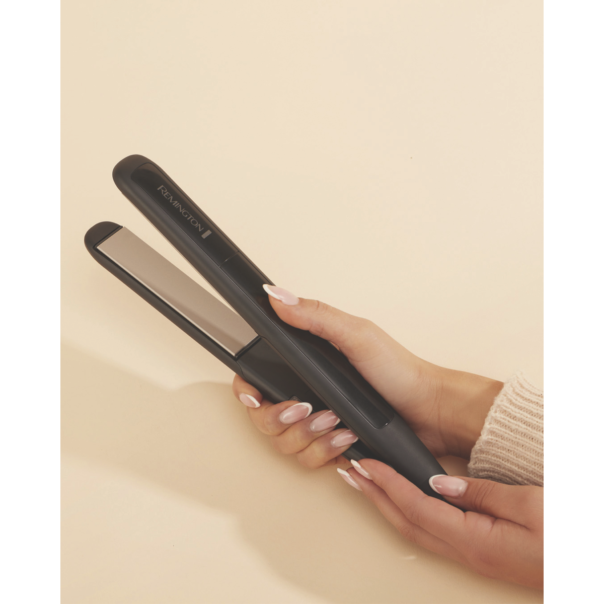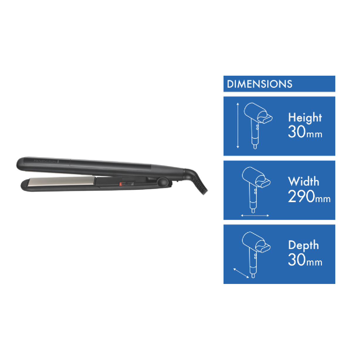 Discover the sleek and modern Remington Ceramic Straight Slim Hair Straightener. With 10mm ceramic coated plates for smooth gliding and high heat of 215°C this hair straightener provides fast 30 second heat up time helping you style your hair quickly and easily. The slim lightweight design with black finish gives comfortable handling and makes styling a breeze. Floating plates adjust to the contours of your hair to give you frizz-free and static-free results. Automatic 60 minute safety shut off provides peace of mind. Swivel cord prevents tangling so you can style with freedom. Backed by a 2 year manufacturer's warranty for your added protection. Order the Remington S1370AU today for salon-sleek straight hair with minimal fuss or damage.