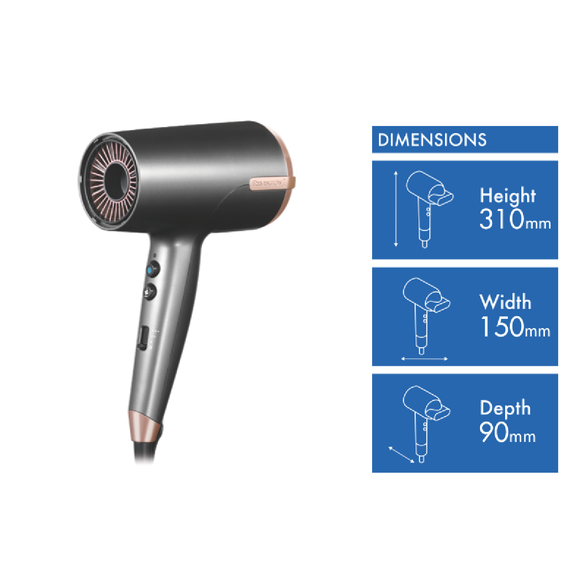 Additional Features Four Styling Attachments: Slim styling concentrator. Flyaway Tamer, Gentle Drying Diffuser: Curl Defining Diffuser, Compact Size, Hang Up Loop with Integrated Cord Storage