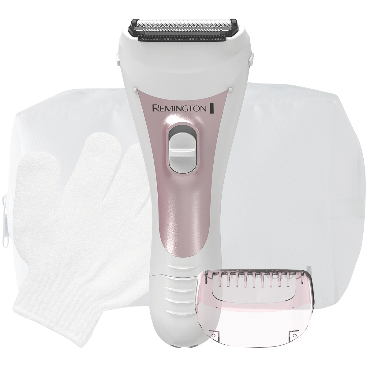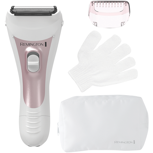 With its sleek white and pink design the Remington S2 Silky Lady Shaver delivers a smooth comfortable shave for your entire body. This cordless rechargeable shaver features a 3 blade system with hypoallergenic foils and a flexing trimmer with comfort tips to gently remove hair on legs underarms and bikini area. The massaging strip and exfoliating glove pamper skin while the bikini comb tackles longer hairs. A handy LED indicator lets you know when it's time to recharge and the lithium battery provides up to 40 minutes of cordless power. This shaver's stainless steel blades and washable head make cleaning a breeze. For convenient portability a storage bag is included along with a power adaptor and cleaning brush. With a 2 year warranty the Remington S2 is your secret to silky smooth skin. The manufacturer's part number for this product is WF2000AU. Check out this top-rated shaver and enjoy flawless skin.