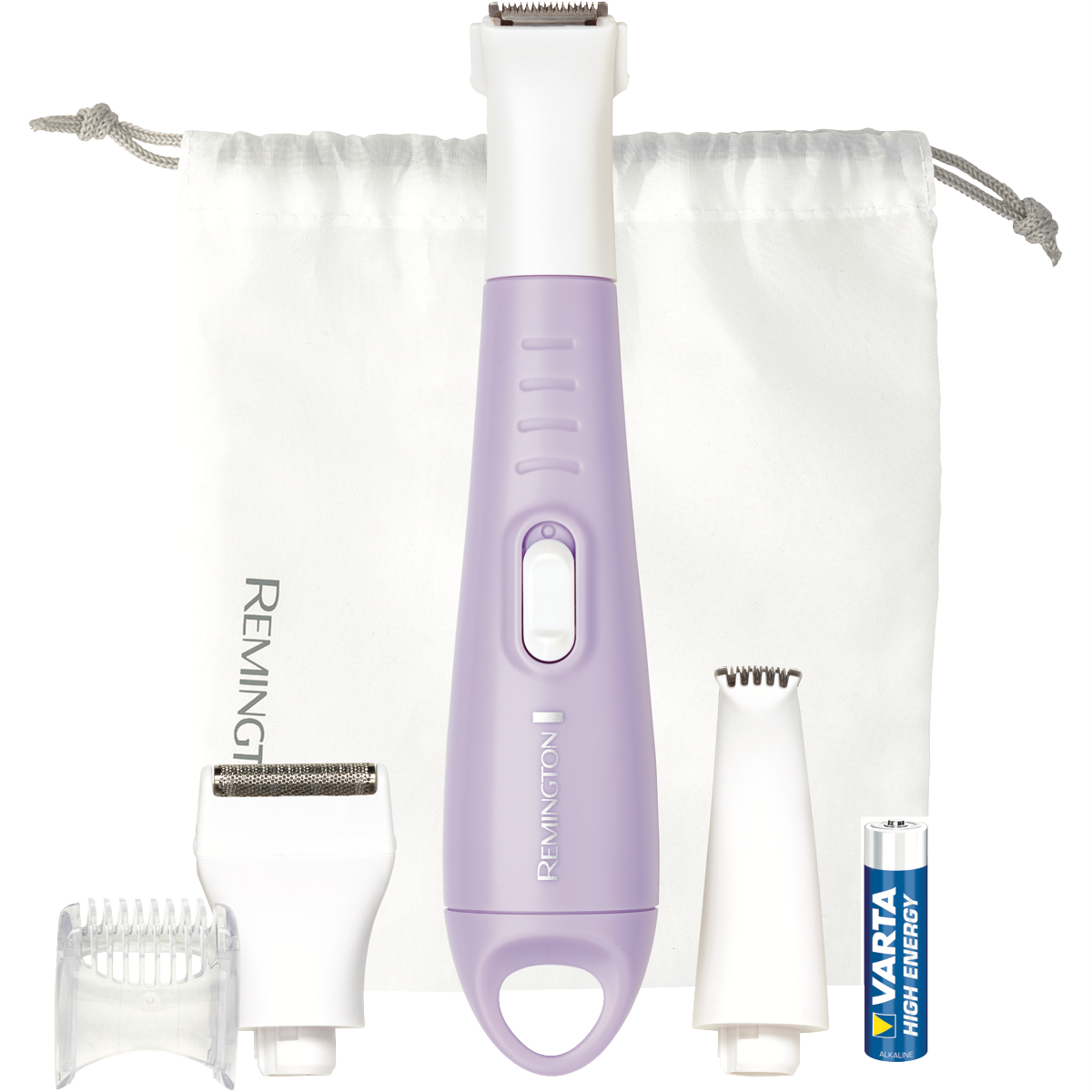 Take control of your personal grooming with the Remington Trim & Shave Body & Bikini Kit. This compact battery operated trimmer kit contains everything needed for trimming shaving and styling intimate areas and hard-to-reach body hair. The hypoallergenic foil shaver gently removes hair on delicate areas while the precision trimmer with stainless steel blades allows for customized trimming lengths using the adjustable comb. Tackle wet and dry hair trimming needs with this waterproof white trimmer. Weighing just 183g and measuring 36mm wide x 38mm deep it is easy to handle and store in the included pouch. With a 2 year warranty this versatile battery-powered grooming kit will keep you looking tidy and well-groomed. The manufacturer's part number for this product is WPG4021AU. Make your personal care simple with the Remington Body & Bikini Kit.