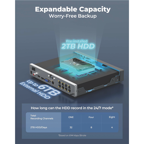 Storage Capacity 2TB HDD Built-in, Up to 12TB (max. 6TB capacity for each HDD)