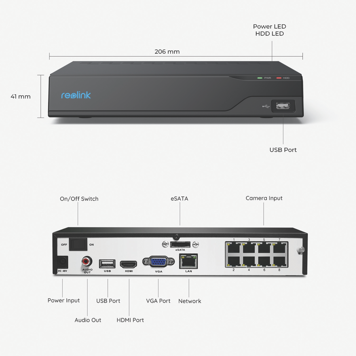Upgrade your security setup with the Reolink 8-Channel 2TB NVR. This sleek black system offers advanced features like person vehicle and pet detection to keep an eye on what matters most. With 24/7 recording and built-in microphones you can capture every moment in crisp detail. The NVR supports up to a whopping 12TB of storage giving you plenty of space for all your footage. Compatible with both PC and smartphone operating systems it's easy to check in from anywhere. Plus enjoy peace of mind with a 2-year manufacturer's warranty. Step up your surveillance game with the Reolink PN-8 NVR.