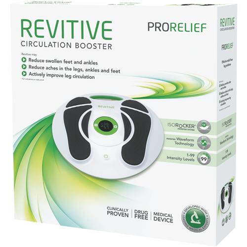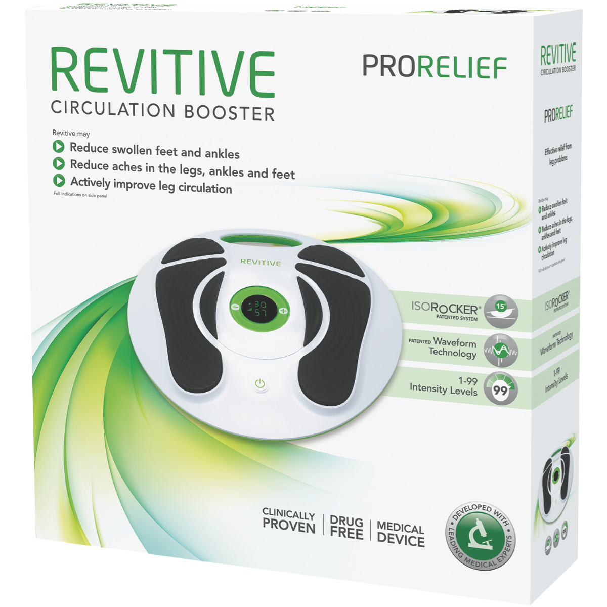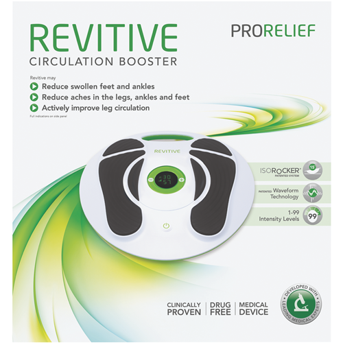This Revitive Pro Relief - EMS and TENS REVPRORELIEF may improve circulation reduce swelling and aches in the feet and ankles and legs using drug-free Electrical Muscle Stimulation (EMS) to stimulate the muscles in your feet and calves. If symptoms persist please consult your doctor.