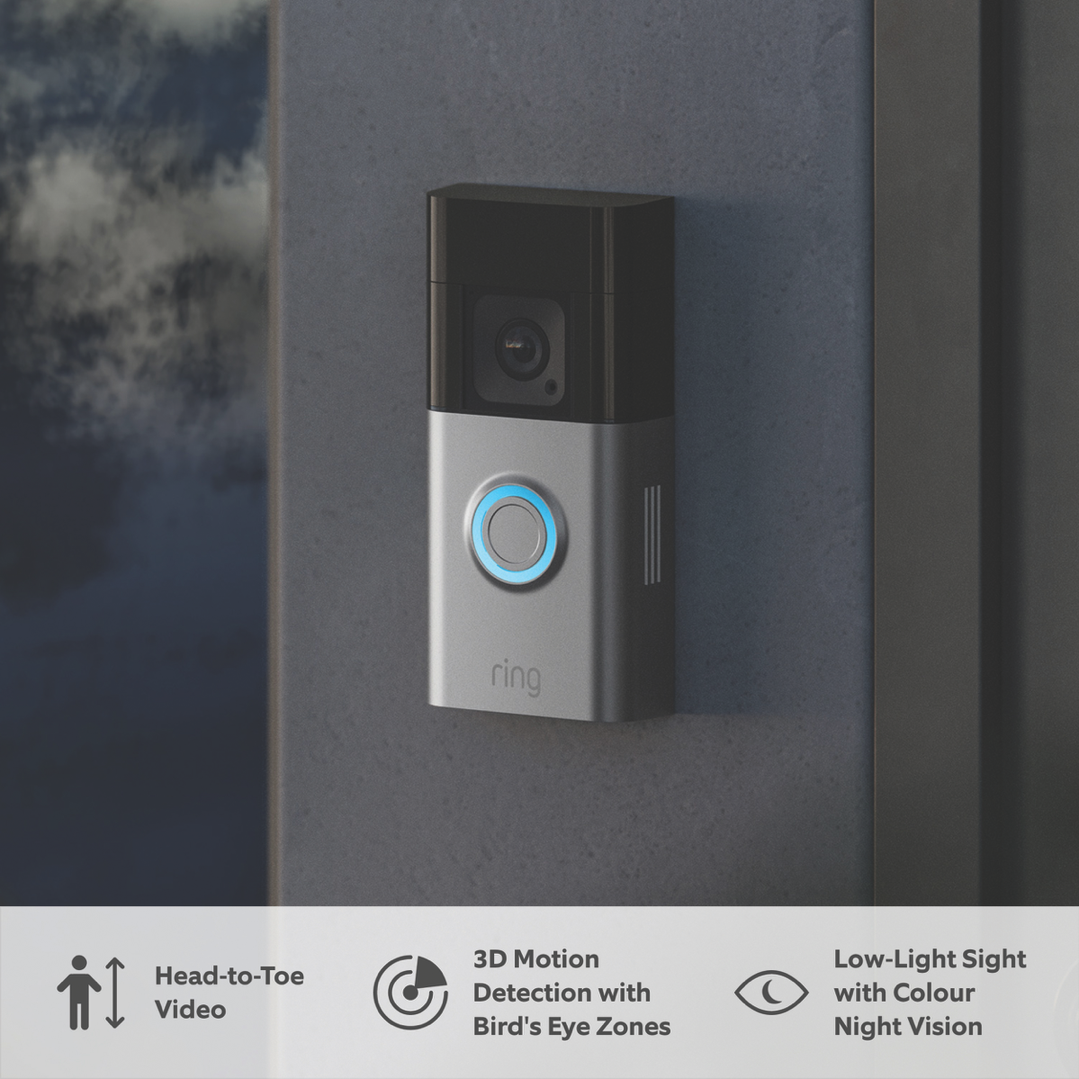 Pro-level security. Battery-powered versatility. Battery Video Doorbell Pro comes equipped with Head-to-Toe View 3D Motion Detection Package Detection and much more. These pro-level features let you see more of whoever drops by know where visitors have been and receive real-time Package Alerts2 straight to your phone.