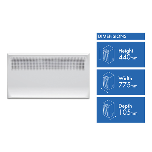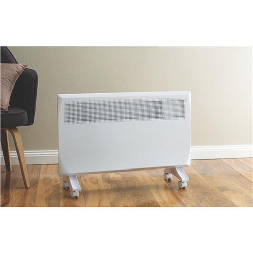 Experience fast and even heating to beat the winter chill in small-to-medium-sized rooms with this Rinnai 1500W Panel Heater PEPH15PEW. Set your preferred temperature and this thermostatically-controlled electric heater will maintain the exact level of warmth desired switching off when the set temperature is reached and turning on again if the temperature drops. Plus with its perforated vent design the air flows over the heating element to rise naturally for quick and even heat distribution without leaving you feeling hot. It has a maximum 1500 watts of heating power. Rest work or study in the peace and quiet thanks to this Rinnai heater's silent operation. Operate its 24-hour programmable timer for set times you'd like it to turn on or off. It can be installed as a wall mounted electric heater or used as portable room heater with the freestanding caster wheel set. If any overheating is detected your Rinnai electric panel heater will auto-shut itself off for safety. In an off-white finish and slimline design with integrated control panel this heater adds a modern touch to any home and is backed by a 7-year warranty.