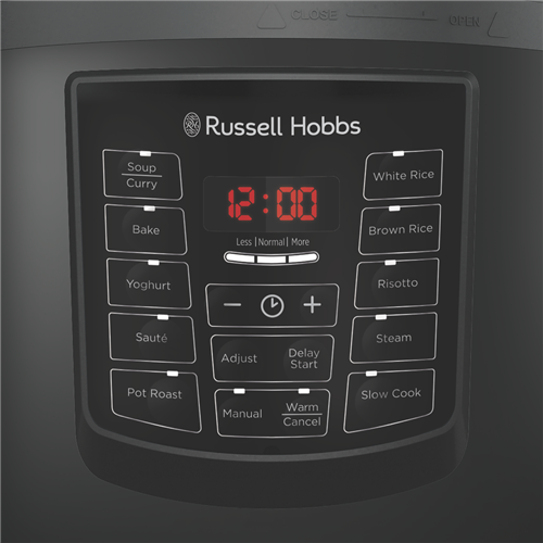 Revolutionize meal preparation with the versatile Russell Hobbs 11-in-1 Digital Multi Cooker. This multicooker features an easy to use digital display with LED lights letting you effortlessly select from 8 pressure and 3 non-pressure pre-set cooking modes like bake and yoghurt. The locking jar-style lid ensures maximum safety when pressure cooking while the auto keep warm function maintains perfect serving temperature after cooking completes. With a generous 5.3kg capacity in a compact 340mm x 320mm x 340mm frame this black multicooker whips up family-sized portions. It comes equipped with a serving spoon trivet rice measuring cup and 2 year warranty for durability. This multicooker's preset programs delayed start timer and non-stick inner pot simplify cooking rice soups curries chilli desserts and more. Let the Russell Hobbs 11-in-1 Digital Multi Cooker open up new possibilities in your kitchen. The manufacturer's part number for this product is RHPC3000. Check out this multicooker to make mealtimes easier.
