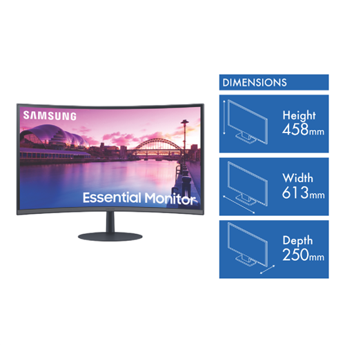 Immerse yourself in vivid curved visuals with the Samsung 27 S39C Curved Monitor. Its 27-inch LED VA screen delivers Full HD 1920 x 1080 resolution for crisp details and vivid colors. With a wide 178-degree viewing angle you can see the screen clearly from any position. AMD FreeSync technology enables smooth tear-free visuals by synchronizing the refresh rate with your GPU. This 27-inch monitor also has a 3000:1 contrast ratio and 250 cd/m2 brightness for excellent image quality. The elegant curved design and multiple connection options including DP and HDMI make this monitor ideal for both work and entertainment. With a 4ms response time and 75Hz refresh rate gaming and videos come to life with fluid motion. Adjust the height tilt and swivel for ergonomic comfort. The chic black design adds modern style to your workspace. This long-lasting monitor comes with a 3 year manufacturer's warranty for peace of mind. Enjoy immersive viewing with the Samsung S39C 27-inch curved monitor. The manufacturer's part number for this product is LS27C390EAEXXY. Check it out today.