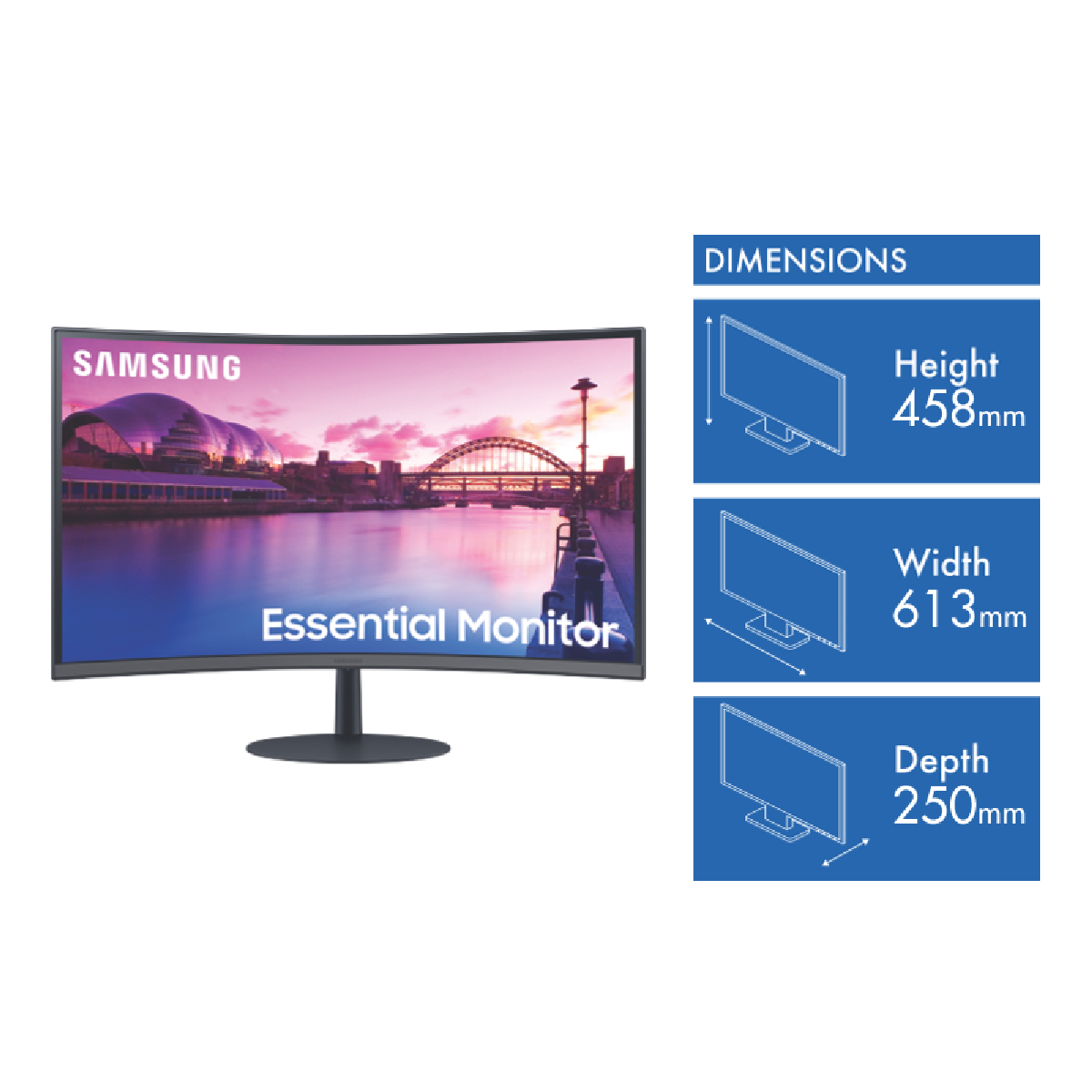 • 27 Inch LED VA curved panel, Full HD, 250 cd per square metre