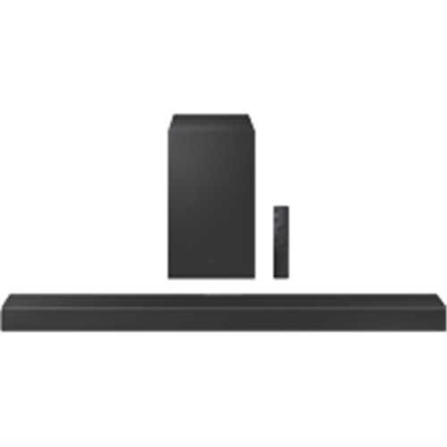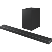 This Samsung sound bar speaker has three channels. It plays MP3 AAC FLAC WAV and OGG audio formats. The Samsung HW-A650/XY has a 430 W total output so you can blast your favourite music. You can connect to your music playlists or television with its HDMI input and digital optical connections. The Samsung sound bar speaker includes a wall mount bracket and features a black finish. It's a good pick for improving the sound you get from your TV.