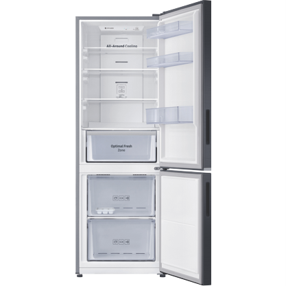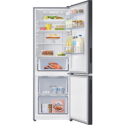 This Samsung fridge features a 310 litre total capacity allowing you to keep perishable goods fresh produce beverages and more. It has a 595mm width a 1700mm height and a 663mm depth. Also the Samsung SRL334NMB has a right-hinged door a black finish and a 3 star energy rating. Safely store your family's food thanks to this Samsung fridge.