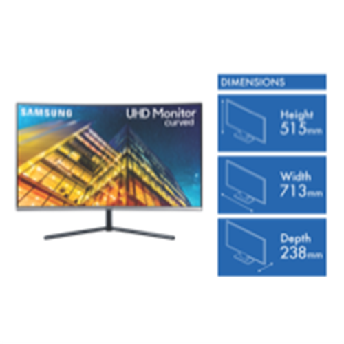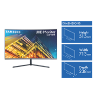 Experience cinematic visuals in stunning 4K Ultra HD with the Samsung 31.5 Curved UHD Monitor. This sleek dark blue grey monitor delivers a crisp 3840 x 2160 resolution on an immersive curved screen that puts you at the center of the action. AMD FreeSync technology enables smooth tear-free gameplay by synchronizing the refresh rate with your GPU. With rapid 4ms response time scenes transition instantly for a seamless viewing experience whether you're gaming editing photos or watching movies. Tilt swivel and adjust the height to your ideal viewing position. Connect your PC or gaming console easily through the HDMI and DisplayPort inputs. Enjoy rich sound by plugging headphones into the convenient audio jack. The durable three-year warranty provides peace of mind. With vivid colors sharp contrast and expanded 178° viewing angles this UHD monitor brings entertainment to life. The manufacturer's part number for this product is LU32R590CWEXXY. See for yourself how the Samsung Curved UHD Monitor can enhance your home entertainment.