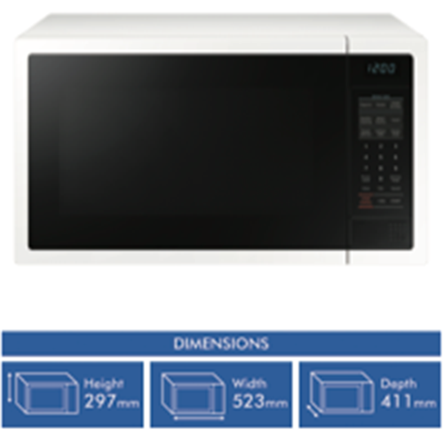 Cook up a storm with the Samsung 1000W 34L White Microwave Oven. This sleek and stylish microwave is perfect for any modern kitchen. With a generous 34 litre capacity you can easily prepare meals for the whole family. The 1000 watt power output ensures fast and even cooking results. Samsung's innovative Triple Distribution System and Humidity Sensor provide optimal heating while the Healthy Cooking options allow you to prepare nutritious meals. The easy-to-use touch control panel and auto cook menus make operation a breeze. Cook reheat or defrost with the touch of a button. The ceramic enamel interior is durable and easy to clean. At 523mm wide this microwave will fit most kitchen benchtops. With a 2 year manufacturer's warranty you can purchase with confidence. The Samsung reliability you trust is now available in a microwave oven that's ideal for any home chef. The manufacturer's part number for this product is ME6124W-1. See for yourself how convenient cooking can be with the Samsung 1000W 34L White Microwave Oven.