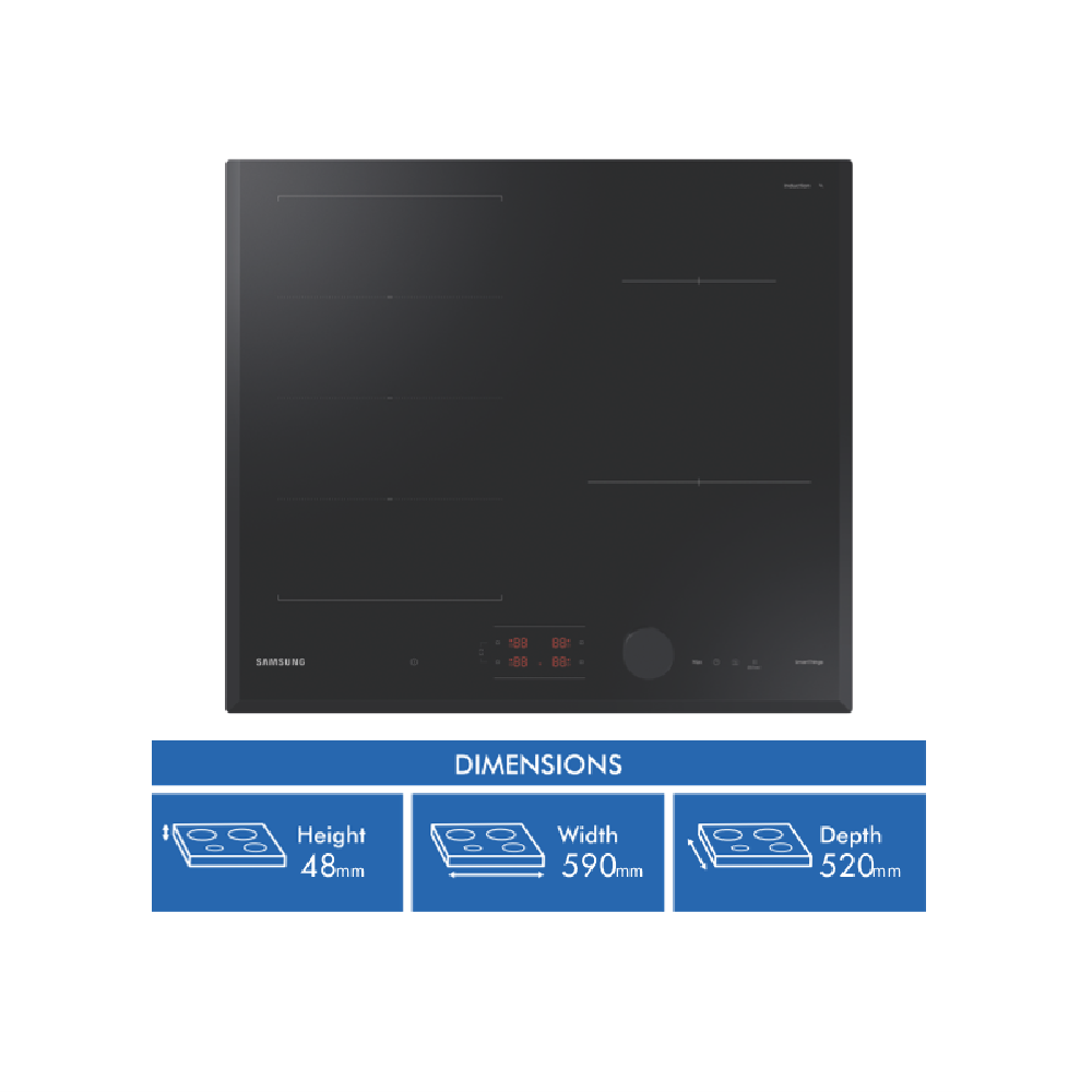 Enhance your kitchen with the Samsung 60cm Induction Cooktop featuring 6 cooking zones to prepare multiple dishes simultaneously. The sleek black glass design and touch controls create an elegant modern look in your home. With 15 power levels plus boost you can precisely control heat to achieve perfect results when simmering sauces or stir frying veggies. The auto connectivity and SmartThings app offer smart control for effortless cooking. Pan recognition safety lock residual heat indicators and automatic shut off provide peace of mind when cooking with kids. At just 48mm deep this cooktop is ideal when benchspace is limited. With a 2 year manufacturer's warranty you can cook with confidence knowing this induction cooktop is built to last. Seamlessly blend technology and style in your kitchen with the Samsung NZ64B6058KK Induction Cooktop.