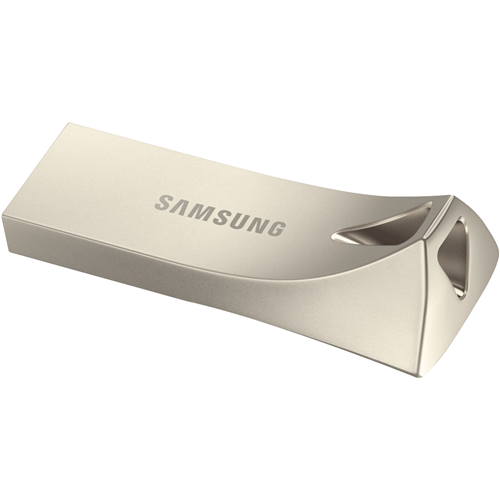 Samsung's 64GB Bar Plus USB 3.1 flash drive in champagne silver is the sleek storage solution you need. With ample 64GB capacity blazing 200MB/s speeds and a compact design this USB drive makes transferring and storing your files on the go a breeze. The USB 3.1 connection ensures fast transfer rates while the durable metal casing withstands everyday use. Whether you need to quickly move presentations photos videos or other files between devices this flash drive has you covered. The plug-and-play functionality also makes it easy to use with PCs Macs and other USB-compatible devices. So upgrade to faster file transfers and ample portable storage with the Samsung 64GB Bar Plus USB 3.1 flash drive. The manufacturer's part number for this product is MUF-64BE3/APC. Check out this speedy and stylish USB drive today.
