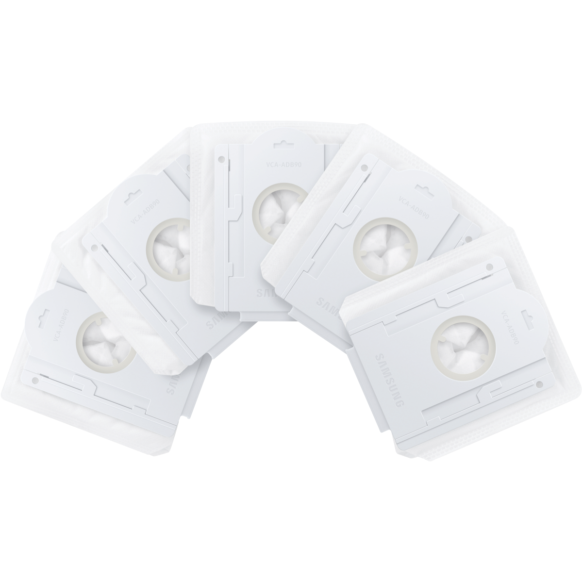 Replenish your Samsung vacuum cleaner with this 5 pack of genuine replacement dust bags. Compatible with select Samsung vacuum cleaners these high quality bags trap dirt and debris to keep the inside of your vacuum clean. The durable construction and secure seal prevent dust from escaping back into the air capturing allergens and keeping your home fresh. With 5 bags per pack you'll always have spares on hand for quick easy changes. Designed for your Samsung these authentic OEM bags optimize suction power and filtration. Ditch generic knock-offs and choose the real deal to keep your Samsung vacuum operating at peak performance. Give your floors and carpets a deeper clean while maintaining your vacuum's hardworking motor. The manufacturer's part number for this product is VCA-ADB90. For genuine Samsung vacuum bags add this 5 pack to your cart today.