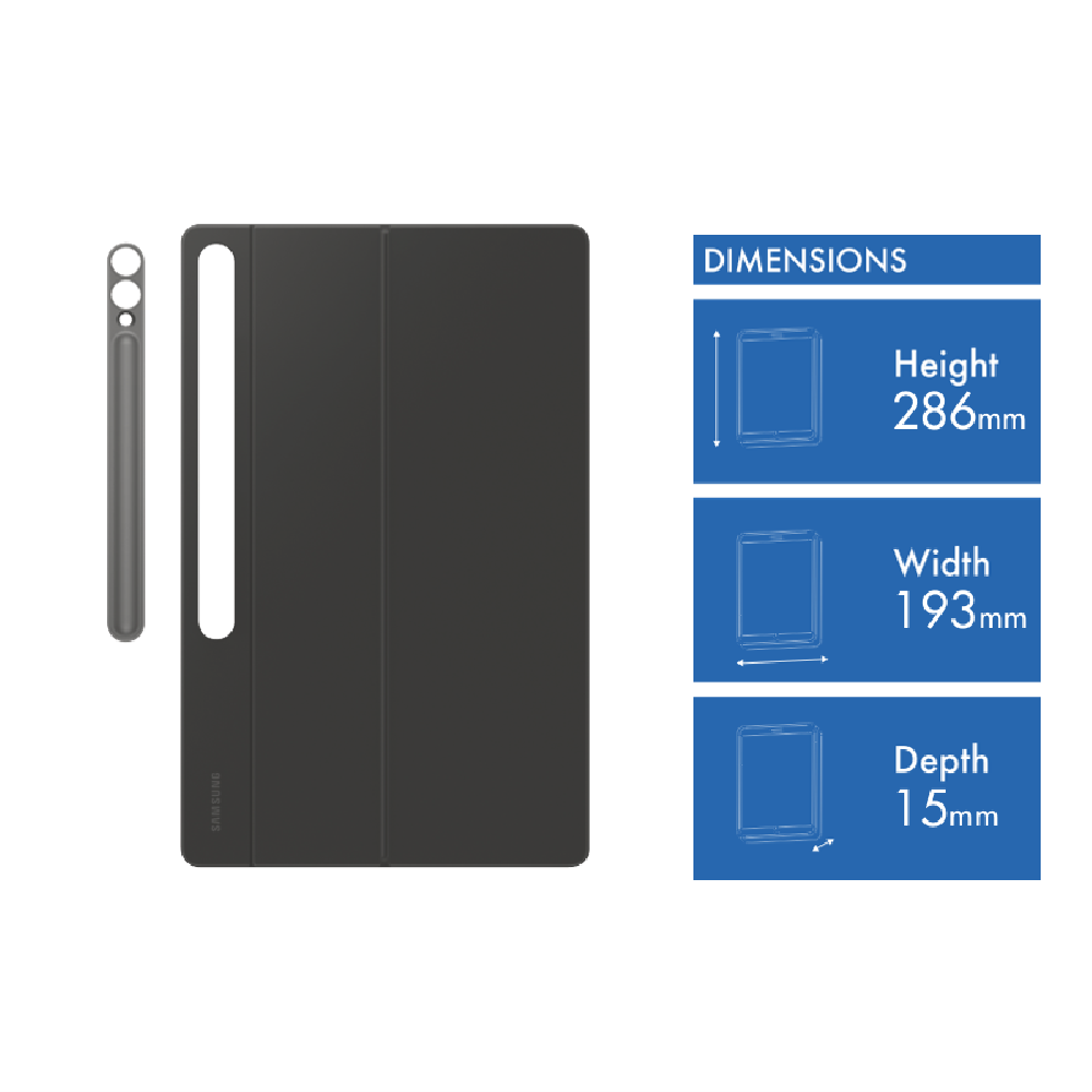 Make typing on your Samsung tablet a breeze with this black keyboard case designed specifically for the Galaxy Tab S9+ and S10+. It protects your tablet while giving you the functionality of a proper keyboard so you can work more efficiently when you're on the go. The case offers both protection and practicality in one sleek package with a comfortable typing experience that beats using the on-screen keyboard. Comes with a 1-year manufacturer's warranty. Model number: EF-DX825UBEGWW.