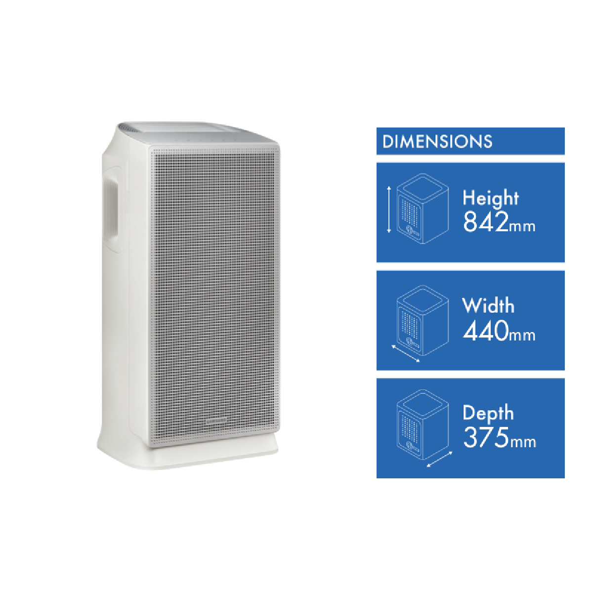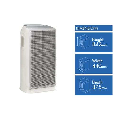 Bring the air in your home to life with the Samsung Versatile plus Air Purifier AX46. This sleek and modern purifier features multi-layered HEPA-level filtration to capture 99.97% of ultrafine dust and allergens as small as 0.3 microns cleaning the air in rooms up to 60 sqm. The built-in Wi-Fi allows you to monitor your home's air quality remotely and set schedules so your home greets you with fresh purified air. With a 4-star energy rating and low power consumption of 60W the AX46 purifies without pushing up your energy bills. The auto sleep and timer modes give you full control over your indoor environment. Visually appealing with its minimalist silver design the AX46 blends into any living space at 440mm wide 842mm high and 375mm deep weighing 13.4kg. With its advanced filtration and smart connectivity the Samsung AX46 Air Purifier brings you one step closer to the clean healthy air you deserve in your home. The manufacturer's part number for this product is AX46BG5000GSSA. Bring your indoor air quality to a whole new level with the Samsung Versatile plus.