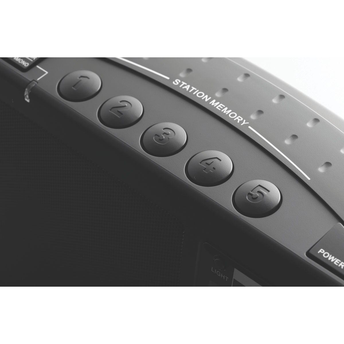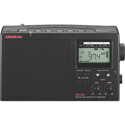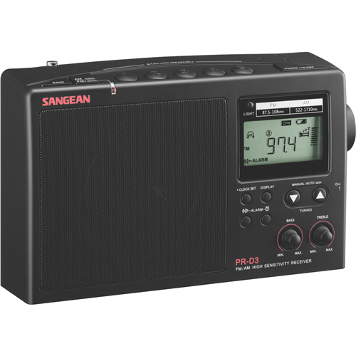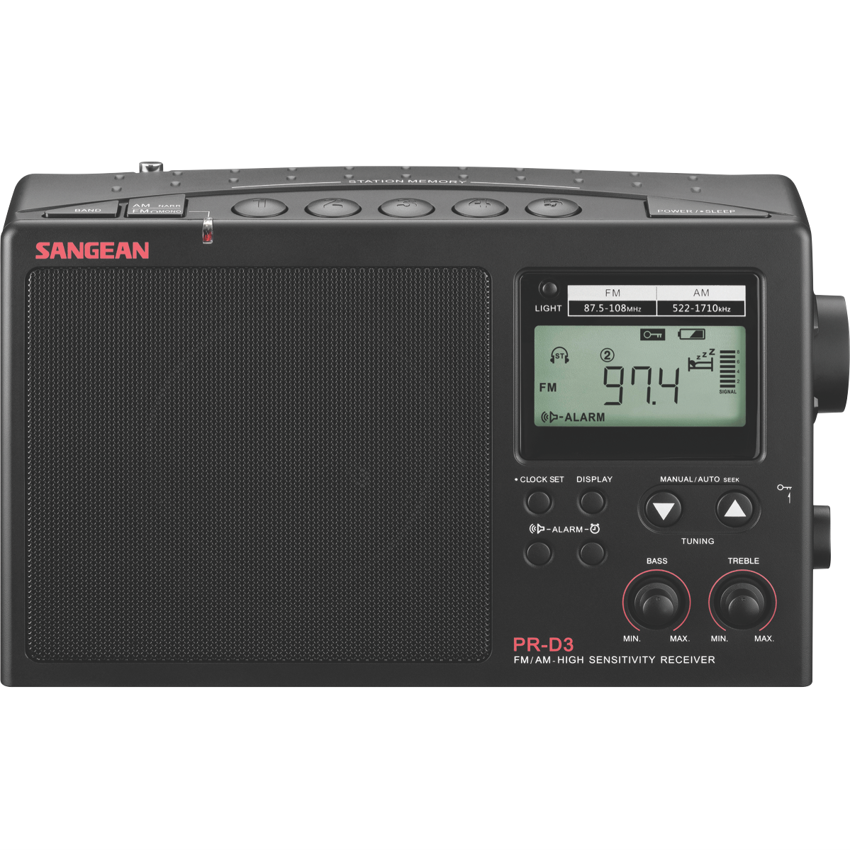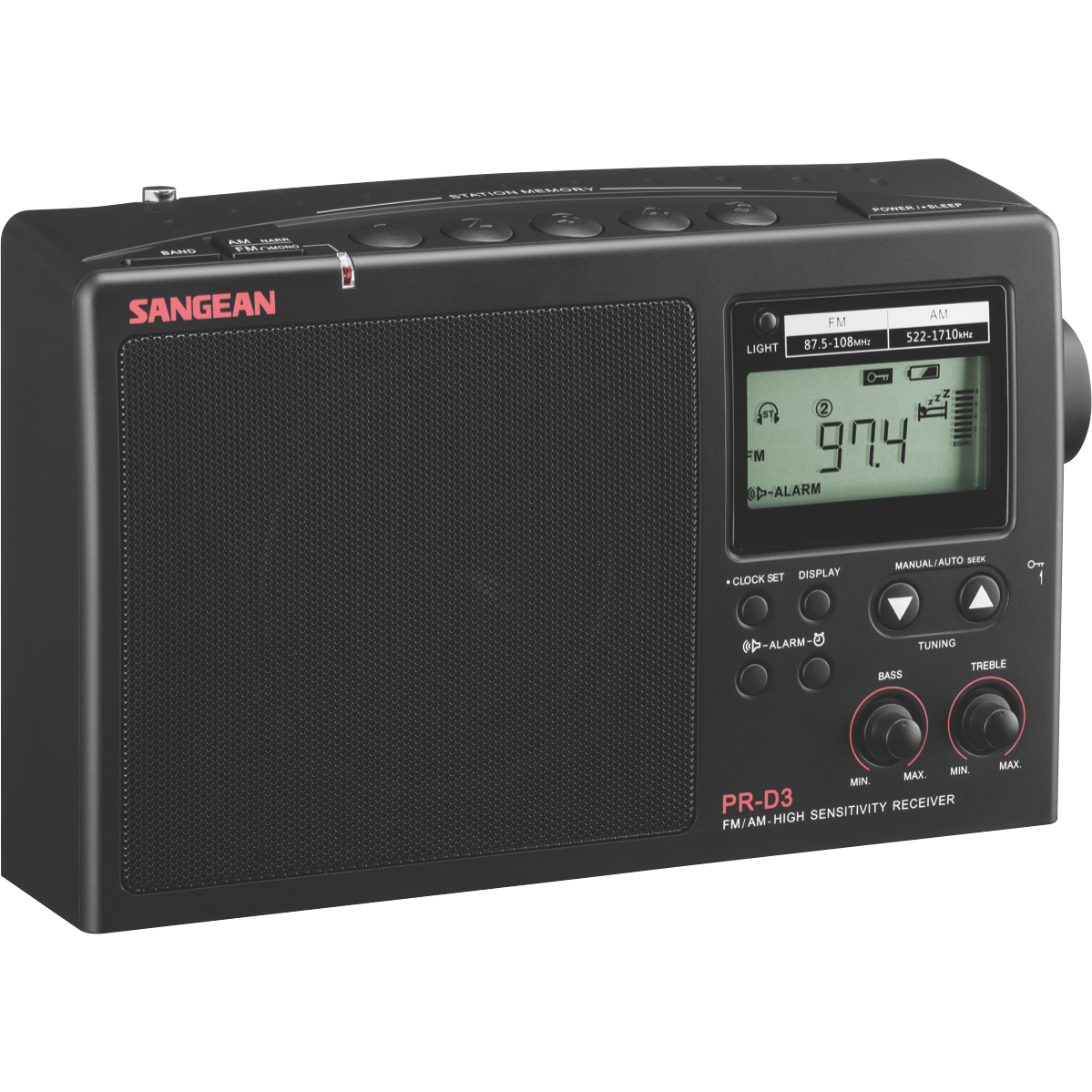 Tune in to crystal clear audio on the go with the Sangean AM/FM Long Range Portable Radio. This portable radio delivers powerful sound with a total output of 2000mW through its full range speaker. The easy-to-read LCD display with backlight allows you to view station details day or night. With 10 station presets (5 FM 5 AM) you can quickly tune to your favorite stations. The 200mm bar antenna with Tracking-less Technology provides excellent reception so you can enjoy radio entertainment even in remote locations. Additional convenient features include an alarm timer to wake you up to either a buzzer or the radio. The radio requires 4 x 1.5V batteries (not included) and comes in a sleek black design. Weighing only 1.62kg it is lightweight and portable. Measuring 170mm in height 280mm in width and 92mm in depth it is compact enough to take anywhere. Experience radio like never before with the Sangean portable radio. The manufacturer's part number for this product is PRD3BK. Learn more about this fantastic radio by visiting our website today.
