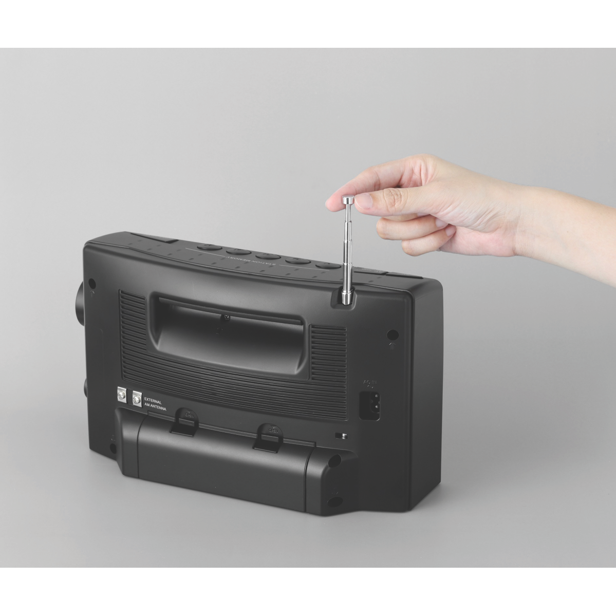Additional Features 200mm Bar Antenna with Tracking-less Technology, Easy-to-Read LCD display with Backlight, Alarm Timer by Buzzer or Radio