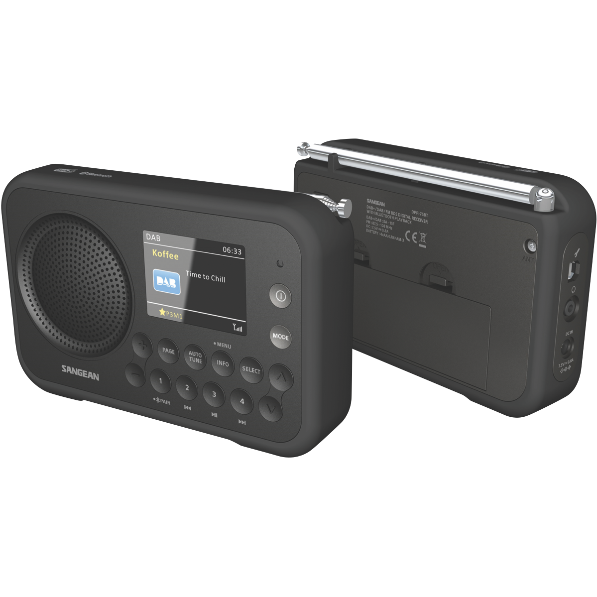 The Sangean DPR76BTMB is a Black portable DAB radio. It features 40 station presets (20 DAB+ 20 FM) and an Easy to read LCD display with backlight. it also features an Automatic station search and you also a Lock switch to avoid accidental operation. This radio Includes power supply and also plays on rechargeable and dry batteries.