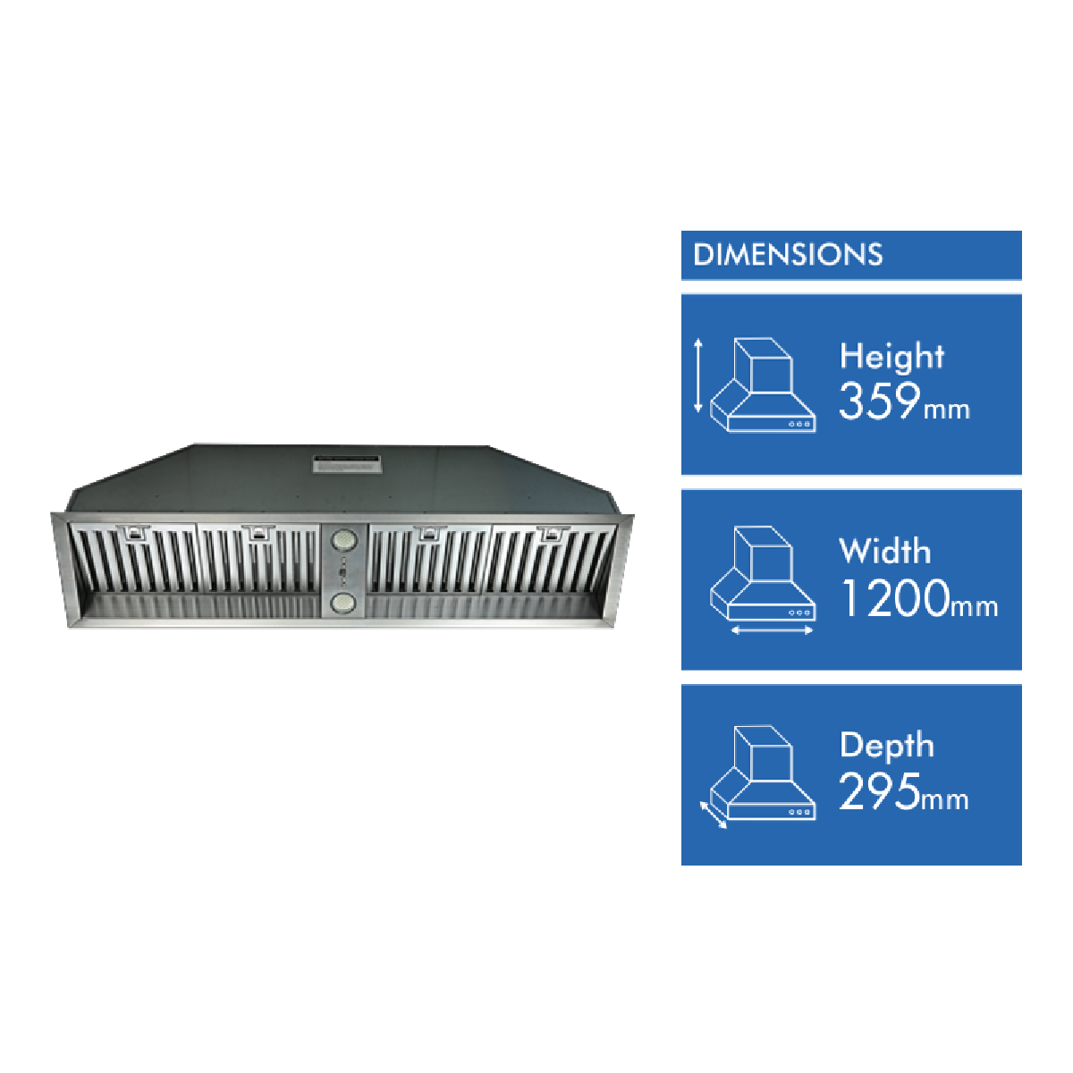 • 120cm ducted and recirculating with 2 x 3W LED lights