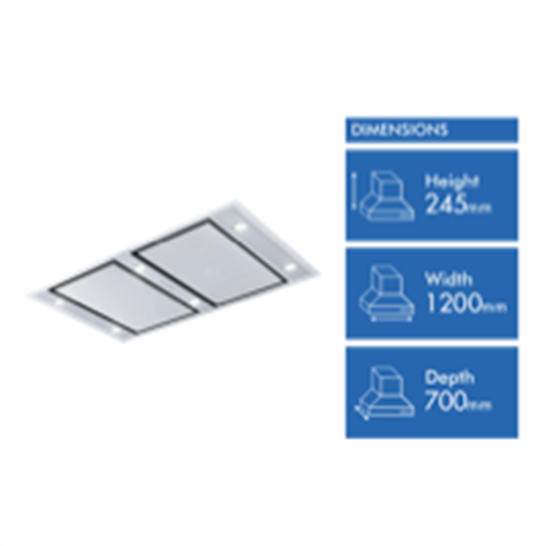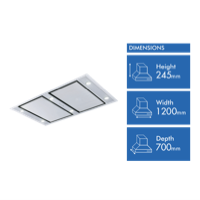 The stainless steel Schweigen 120cm Silent Ceiling Cassette Rangehood UM4220-12SP offers excellent coverage over island or peninsula style kitchen benches. Its 1600 cu m/hr extraction capacity enables you to reduce cooking smells heat and condensation in your kitchen. It has multiple LED lights to illuminate brightly over your creations. With the technology of Perimeter Aspiration airflow is targeted towards the edge of the cassette creating a more intense extraction area. Perfect for maintaining uninterrupted views with its installation flush into the ceiling or bulkhead this Schweigen rangehood accentuates any modern kitchen design.