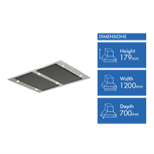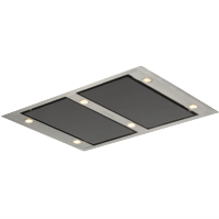 The stainless steel and black glass Schweigen 120cm Silent Ceiling Cassette Rangehood UM422G-12SP offers excellent coverage over island or peninsula style kitchen benches in sleek modern styling. Eliminate smoke and vapours with its 1600 cu m/hr extraction capacity. It has multiple LED lights to illuminate brightly over your creations. With the technology of Perimeter Aspiration airflow is targeted towards the edge of the cassette creating a more intense extraction area. Perfect for maintaining uninterrupted views with its installation flush into the ceiling or bulkhead this Schweigen rangehood accentuates any modern kitchen design.