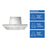 This Schweigen CL7272SP2 silent range hood is a wall canopy hood. It has a 1600 cu m/hr extraction capacity so you can rid your cooktop of smoke and unwanted smells. Beyond that illuminate your cooking area with the Schweigen CL7272SP2's halogen lighting. It boasts aluminium filters and a ducted design. In addition the Schweigen range hood's touch controls enable you to lower the light when it's time for dining. It has a stainless steel finish and a 3 year manufacturer warranty. Plus the CL7272SP2 range hood sports a 1200mm width a 1000mm height and a 700mm depth. You can enhance your kitchen's decor with this Schweigen range hood.