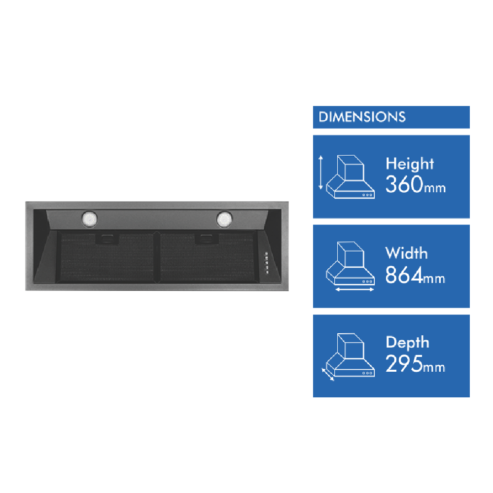 • 90cm ducted undermount with 2 x 3W LED lights
