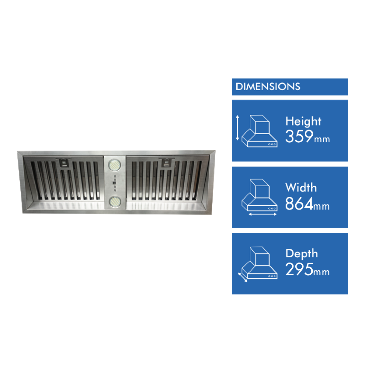 • 90cm ducted and recirculating with 2 x 3W LED lights