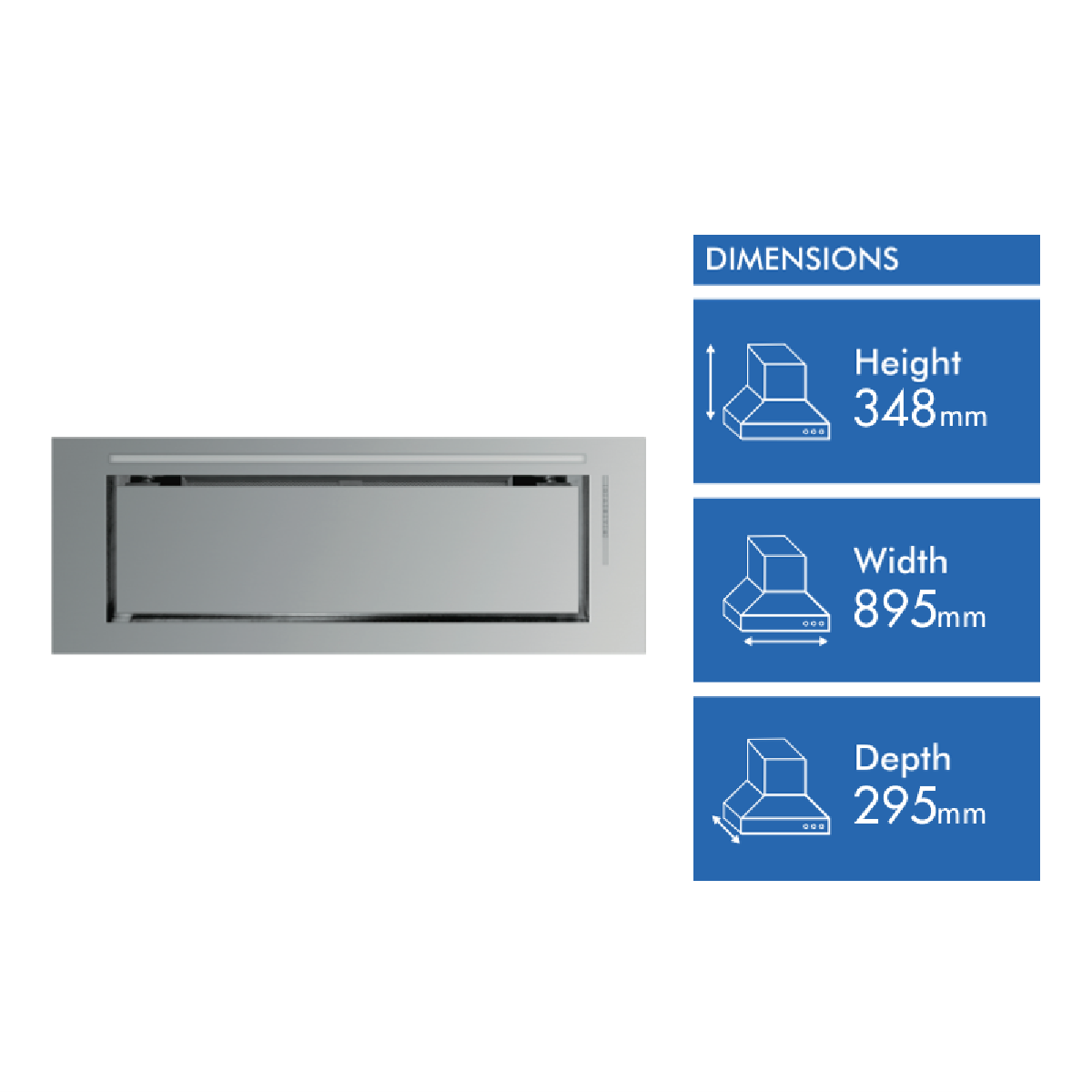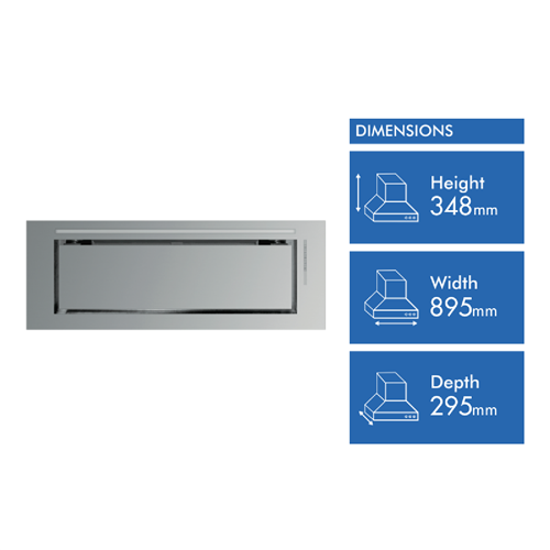 Additional Features Concealed design, Perimeter Aspiration - as smoke and steam rises it is directed to the outer edges of the canopy before being extracted through the filters, 15 minute delay timer with auto shut off, Energy-efficient motor, Digital display