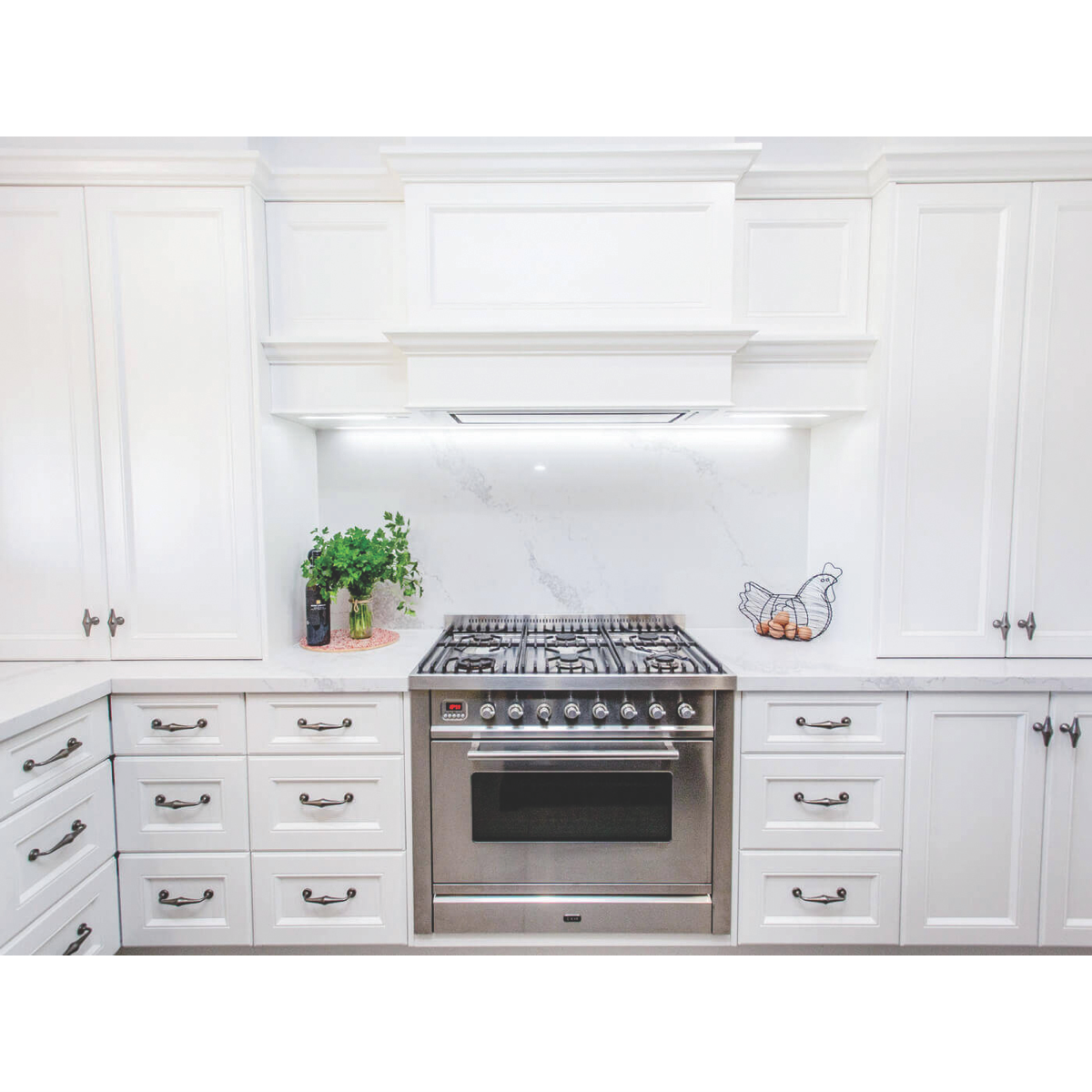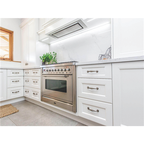 Transform your kitchen with the sleek modern style of the Schweigen 90cm Silent Undermount Rangehood. This stainless steel undermount rangehood makes a sophisticated statement with its concealed design that blends seamlessly into your décor. The perimeter aspiration feature directs steam and smoke to the edges for efficient extraction through the filters. With a powerful 1600m3/hr extraction capacity and 4 fan speeds this rangehood keeps your kitchen fresh and ventilated. The soft-touch controls and 15 minute auto shut-off timer add convenience to your cooking experience. Featuring energy-saving LED lights and a German-engineered Isodrive motor for quiet performance this rangehood combines smart technology with simple functionality. The aluminium filters are easy to clean and maintain while the ducted installation ensures optimal air flow. With a width of 895mm height of 348mm and depth of 295mm this rangehood is sized to fit above your cooktop and remove odours effectively. It comes with ducting accessories for quick installation and is backed by Schweigen's 10 year motor warranty for lasting quality. For a stylish silent rangehood that makes an impression look no further than the Schweigen 90cm Undermount Rangehood. The manufacturer's part number for this product is UM-PA9SP. Check it out today to upgrade your kitchen.
