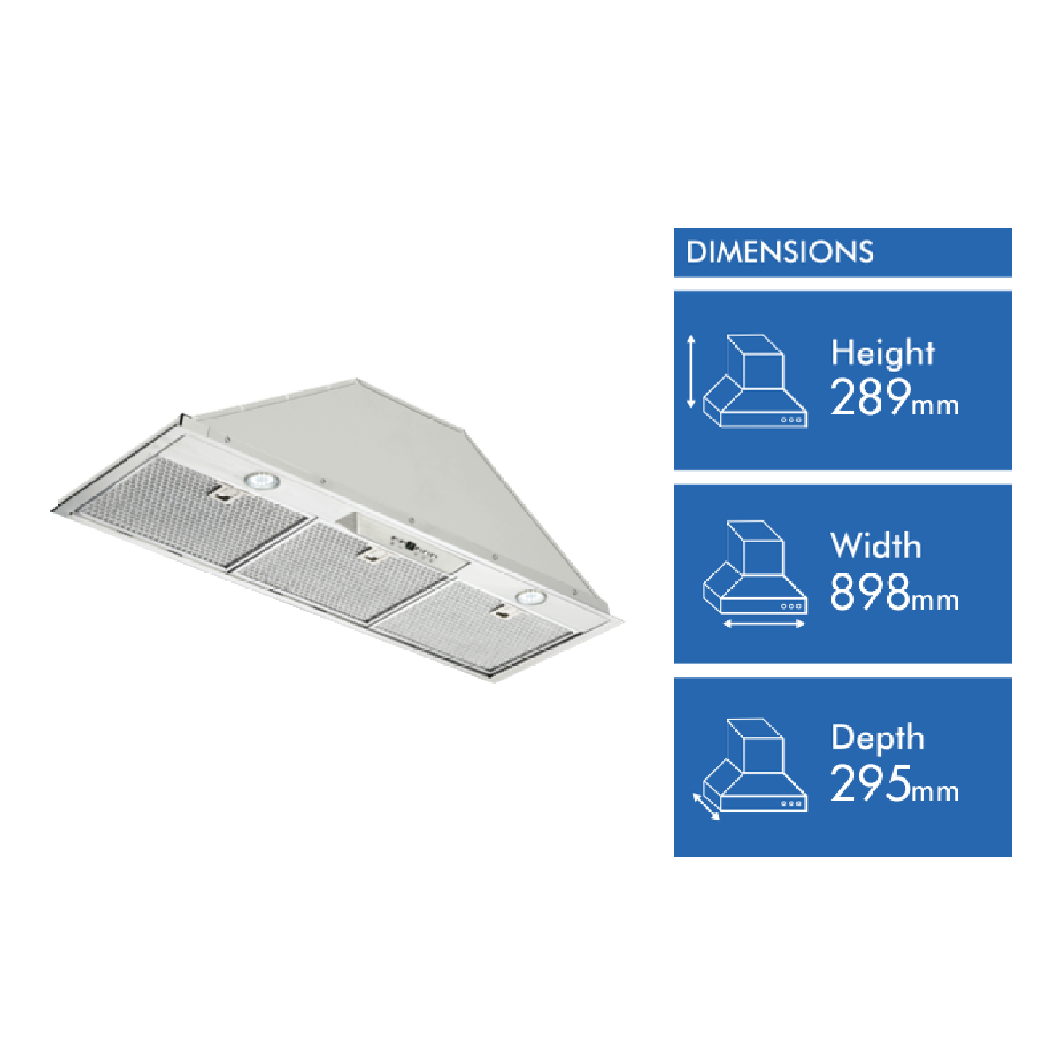 • 90cm ducted and recirculating with 2 x 3W LED lights