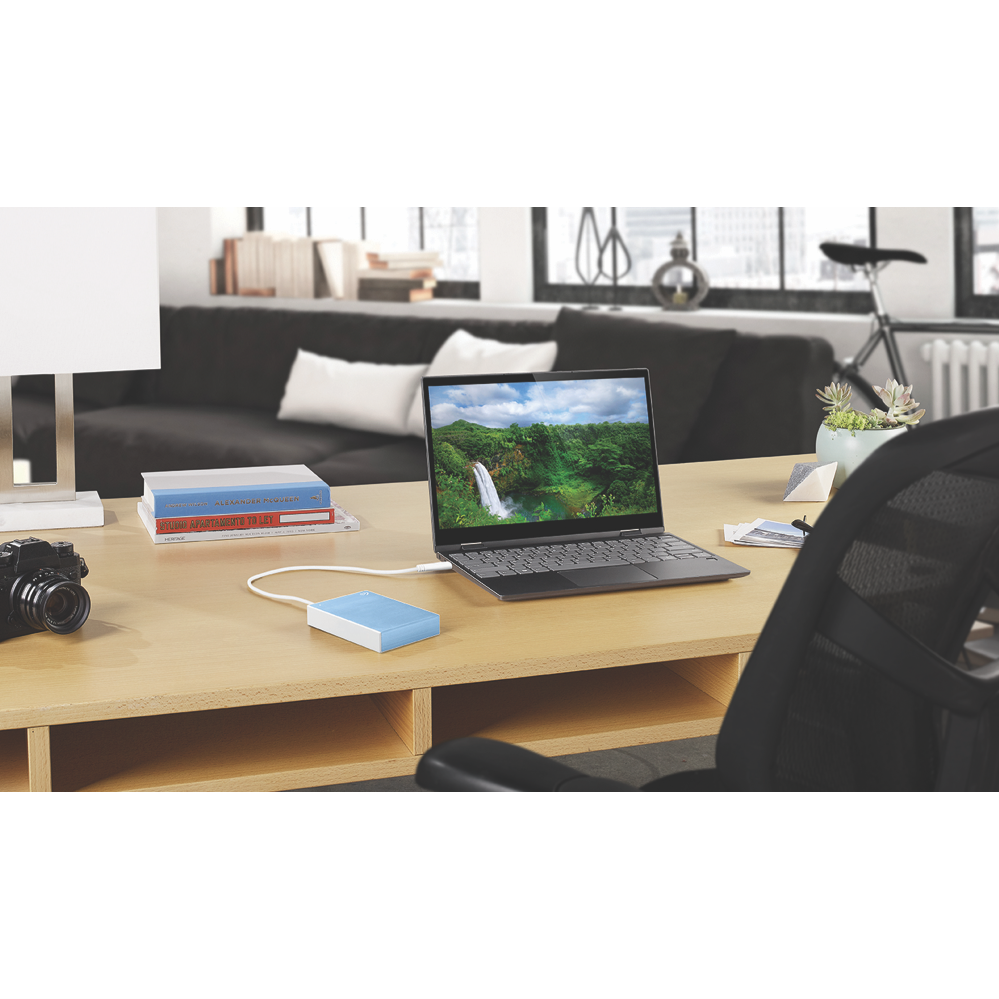 Take your digital life with you wherever you go with the Seagate 2TB OneTouch Portable Hard Drive in light blue. This portable external hard drive lets you easily store 2TB of photos videos music and documents thanks to its USB 3.0 connection that provides lightning-fast file transfers. The minimalist design features a unique fabric enclosure for durability and style. With password-enabled encryption you can securely access your files anywhere. Easily back up content with the downloadable Toolkit Backup Software. Enjoy access to a 1-year Mylio Create plan and 4-month Adobe Creative Cloud Photography membership. Seamlessly manage and share photos with the Mylio app. Lightweight and compact this hard drive slips into your bag or pocket for convenient portability. With a 3-year manufacturer warranty you can rely on the OneTouch drive. The manufacturer's part number for this product is STKY2000402. Give your digital life reliable portable storage with the Seagate OneTouch.