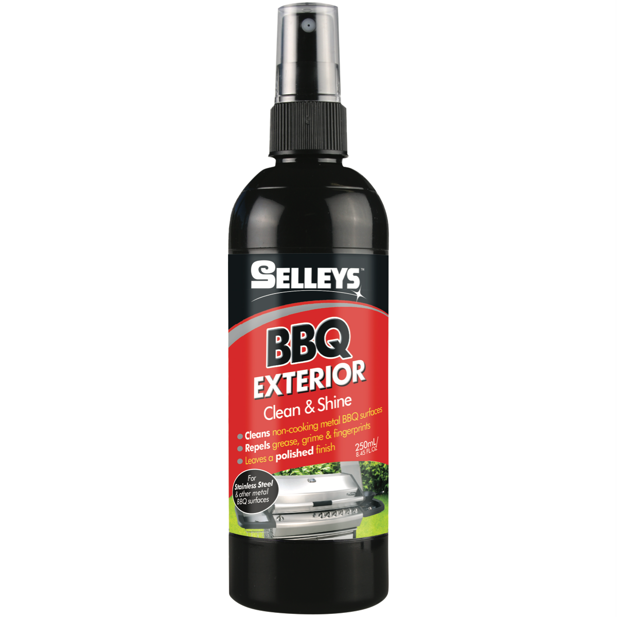 The Selleys BBQ Exterior Clean and Shine is the perfect solution for keeping your outdoor cooking area looking its best. This Australian-made cleaner effortlessly removes baked-on grease grime and food spills from your BBQ's exterior leaving behind a just-cleaned shine. Its special formula repels future fingerprints and splatters by depositing an invisible protective film after each use. Any unsightly grease or messy drips are easily wiped away restoring your BBQ to a like-new appearance. The fresh botanical fragrance helps eliminate unpleasant smoking odors as well. This versatile cleaner can be used on enamel stainless steel and painted surfaces of any BBQ brand. Simply spray on and wipe off with a soft cloth for a spotless finish. With regular use after every cookout the Selleys Clean and Shine keeps exterior BBQ surfaces looking clean while its grease-fighting action helps prevent flare-ups. No need for scrubbing or harsh chemicals. The convenient trigger-spray bottle allows you to quickly coat larger areas. Make your outdoor BBQ sparkle again while protecting its good looks with the Selleys BBQ Exterior Clean and Shine. The manufacturer's part number for this product is BE 250M. Give your BBQ the care it deserves with this Australian-made cleaner.