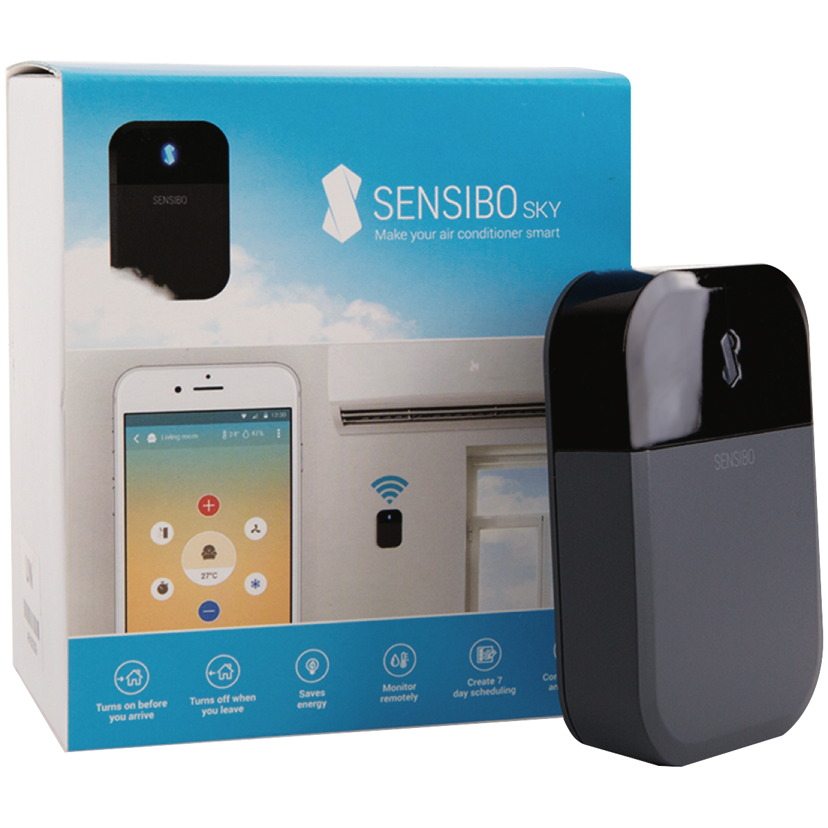 The 2nd generation Sensibo Sky Wi-Fi air conditioner controller enables you to control your air conditioner from anywhere anytime via the downloadable Sensibo app on your smartphone. This clever controller automatically turns on your air conditioner before you arrive home using your phone location with geo-fencing and will even auto-turn off the A/C when you leave home to save energy. Plus Sensibo Sky has a Climate React feature to change the climate in your room based on your set temperature humidity and comfort parameters. It works with any remote-controlled air conditioner. And with unlimited 7-day scheduling you can be in full control of your climate by defining as many schedules as you'd like - warm the house when you wake up and turn off the A/C automatically after you go to sleep. Connect to your Google Home or Amazon Echo device to control the temperature with your voice without reaching for your phone. Make your split system portable or window wall air conditioner smarter thanks to Sensibo Sky.