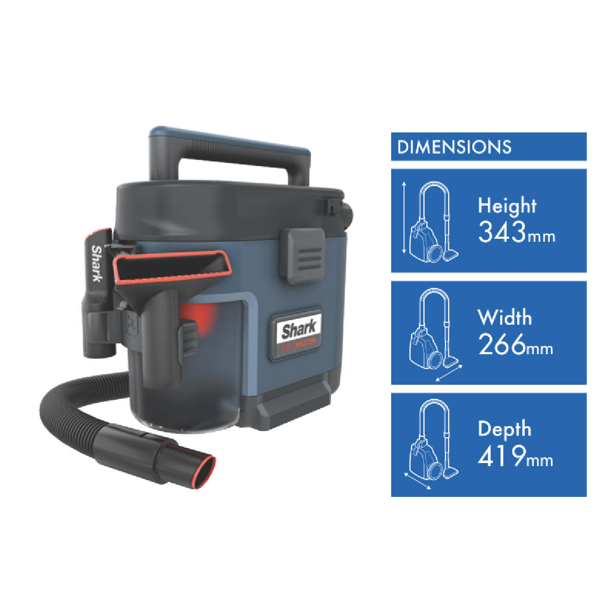 Tired of messes getting in the way of your day? The Shark MessMaster VS101ANZ is here to help. This versatile wet and dry vacuum in a sleek burnt ashes color makes quick work of spills and pet hair. At just 4.4 kg it's easy to maneuver around your home. The included squeegee tool carpet tool crevice tool and extension wand let you tackle messes on any surface. Measuring 343 mm high 266 mm wide and 419 mm deep it fits neatly in your cleaning closet. Plus it comes with a 2-year manufacturer's warranty for extra peace of mind.