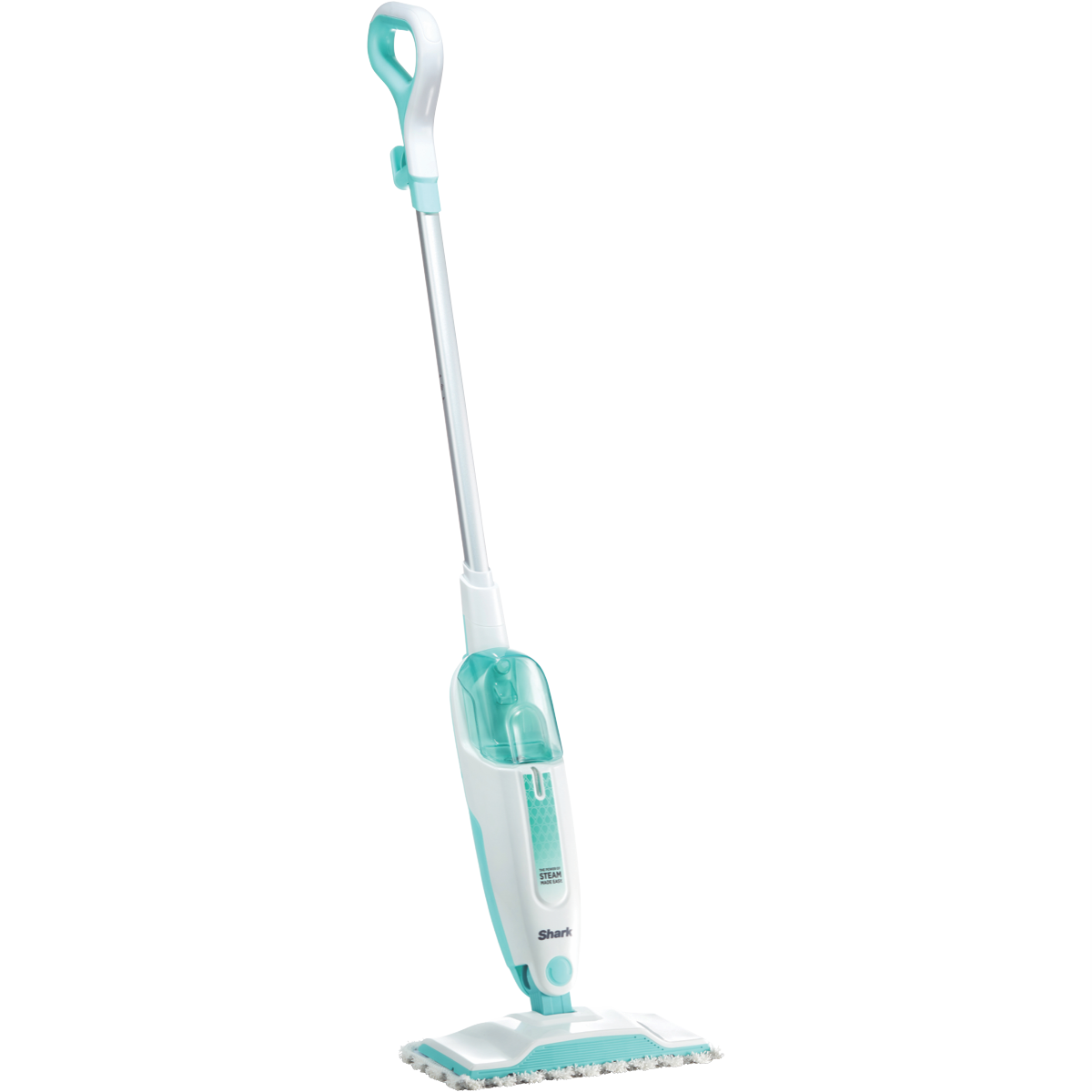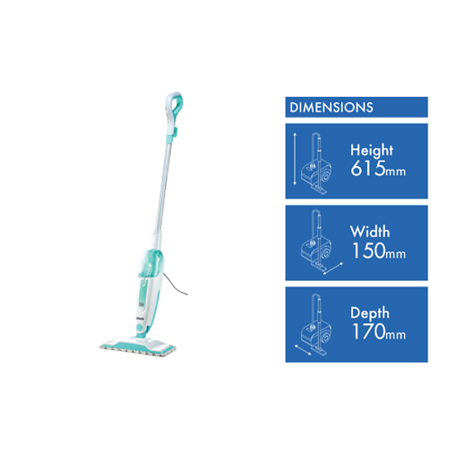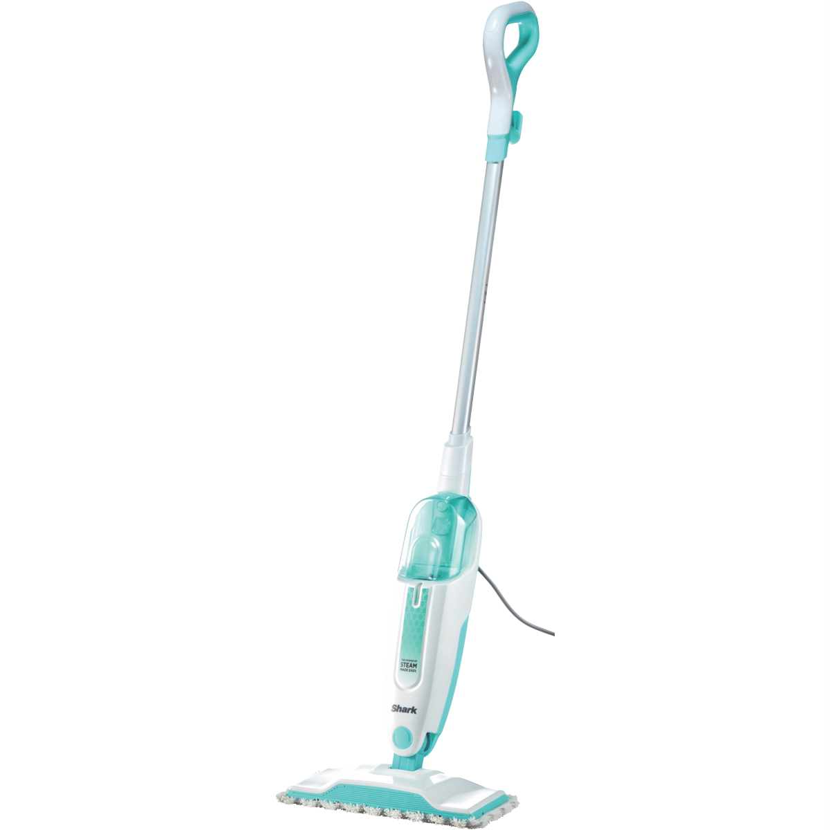Make light work of cleaning sealed hard floors with the Shark Steam Mop. This steam mop's powerful 1050W output generates steam on demand to sanitize surfaces and remove stuck-on grime while its large 375ml water tank allows up to 30 minutes of steam cleaning before refilling. The steam mop's lightweight 1.8kg body maneuvers easily under furniture to clean hidden areas. Its 5.5m power cord gives you flexibility to clean multiple rooms without unplugging. The Shark Steam Mop comes with a dirt grip pad and mop head to trap and lock dirt in place as you clean. Enjoy sparkling floors without chemicals using this steam mop's natural steam cleaning power. Shark provides a 1 year warranty for peace of mind. The manufacturer's part number for this product is S1000. Bring this steam mop home to refresh hard floors effortlessly.