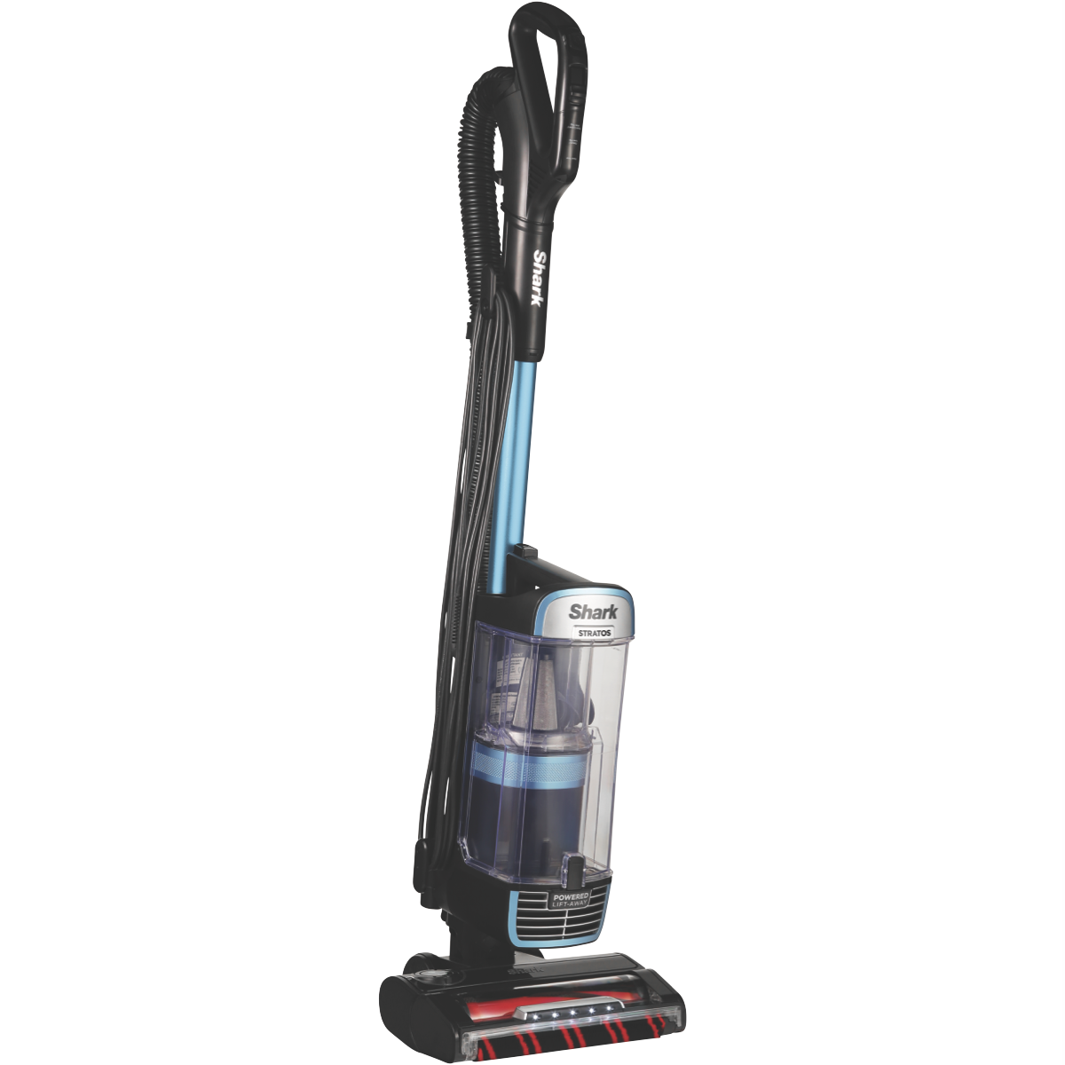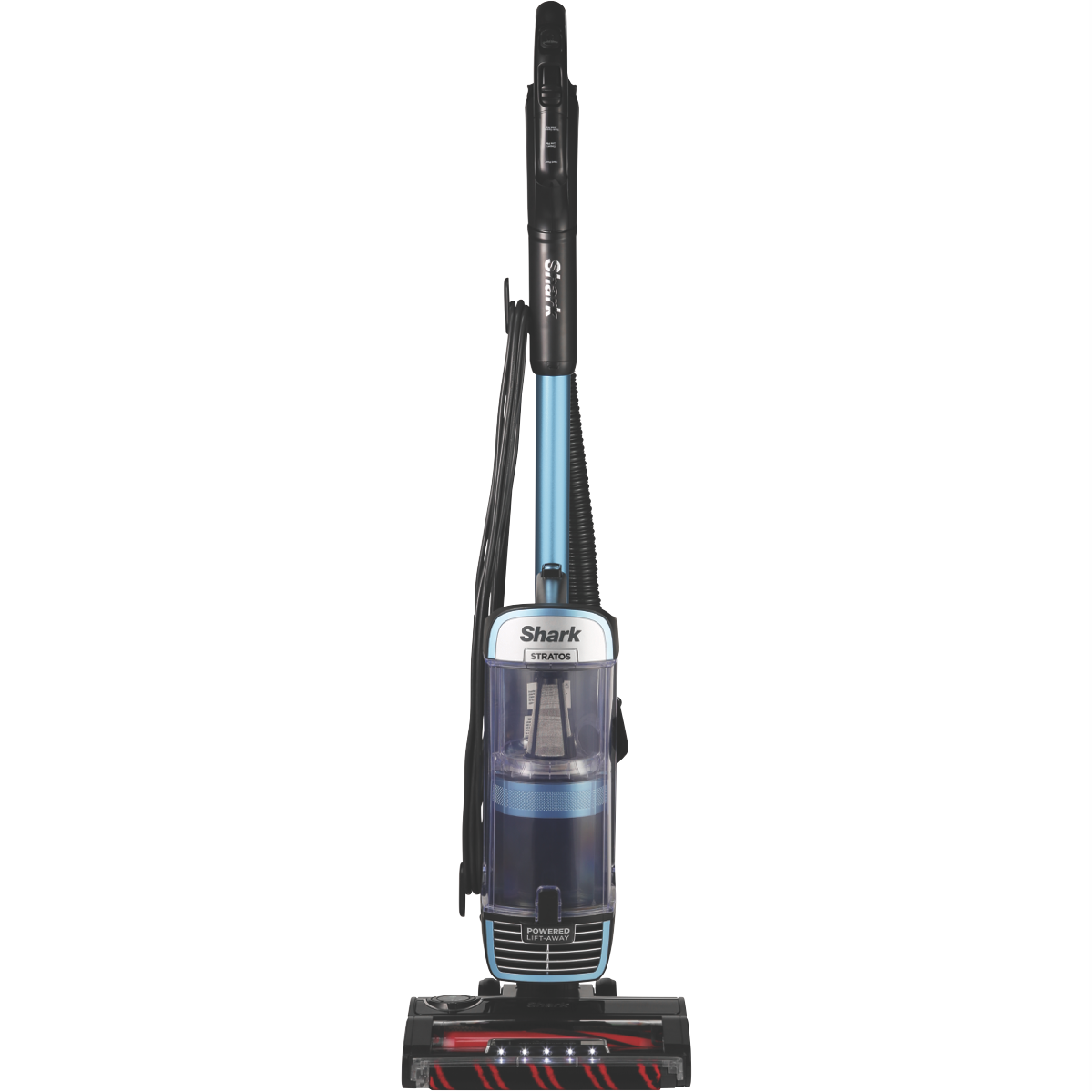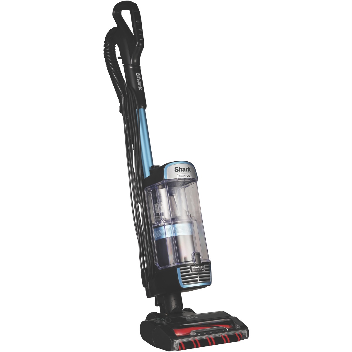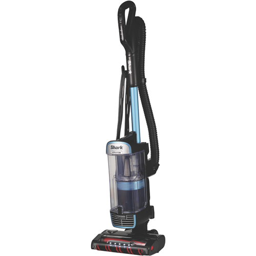 Clean floors and upholstery with ease using the Shark Stratos XL Pet Pro Lift-Away Upright Vacuum in navy blue. This powerful 800-watt bagless upright vacuum makes quick work of embedded dirt dust and pet hair on carpets rugs and hard floors throughout your home. The self-cleaning brush roll efficiently removes embedded debris while the HEPA and foam filters trap dust and allergens inside the 1.3-litre dust cup. Detach the canister to easily clean hard-to-reach areas like stairs and upholstery. The crevice tool multi-surface tool and odour neutralizer help tackle messes in every room. Shark backs this vacuum with a 2-year warranty. The manufacturer's part number for this product is AZ913. Bring home the Shark Stratos XL Pet Pro today for a deeper clean.