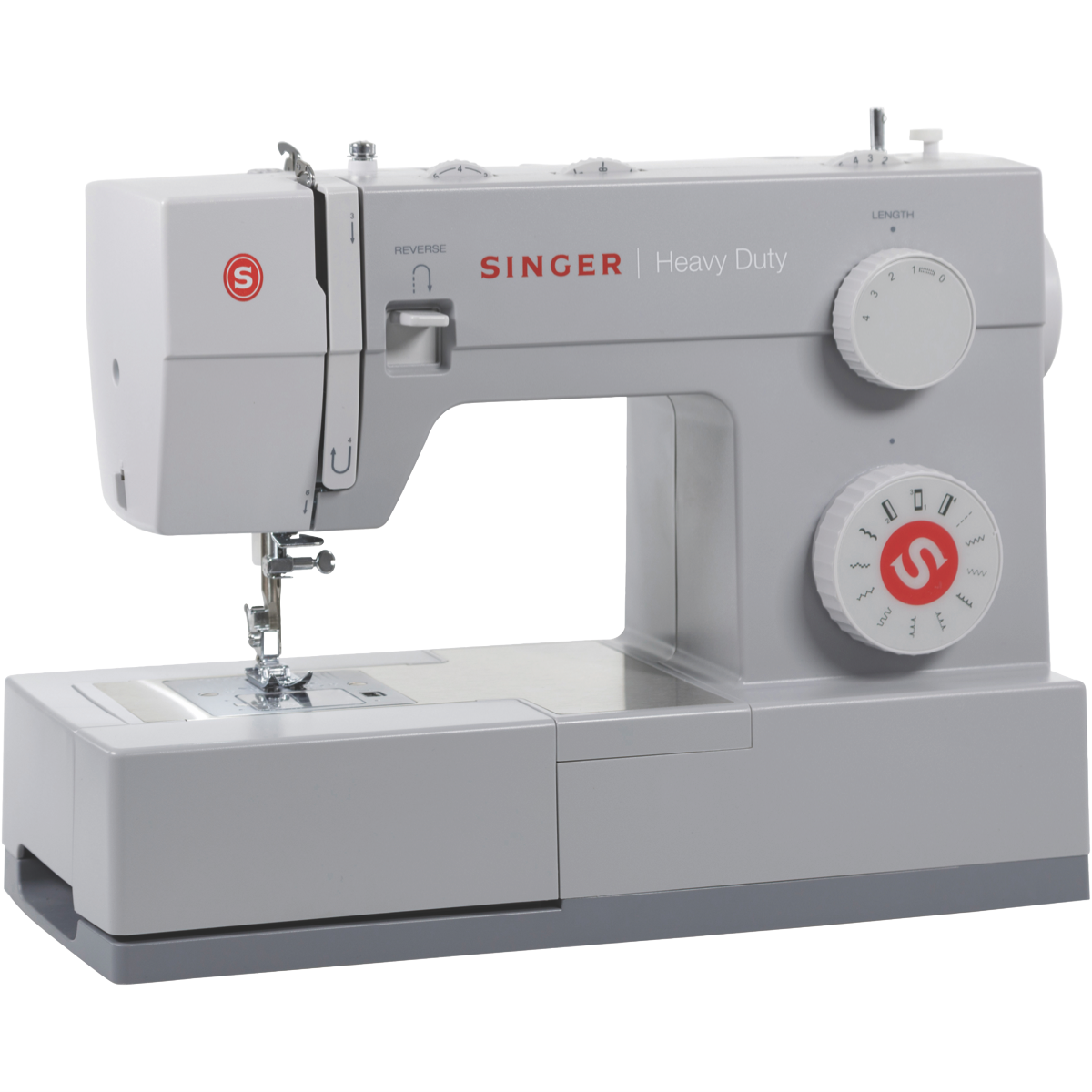 Take your sewing skills to the next level with the Singer Heavy Duty 4411 sewing machine. This versatile grey sewing machine boasts a heavy duty metal frame for skip-free sewing and stability. With 11 built-in stitches a 15.9cm needle to tower clearance and 110 stitches per minute you'll breeze through hems seams and decorative stitches on all types of fabrics. LED lighting illuminates your work area while the adjustable presser foot pressure lets you sew delicate fabrics with ease. At 6.35kg this sewing machine is 60% stronger than standard models yet still portable enough to take to classes or sew on the go. With a raft of handy accessories like zipper and buttonhole feet this Singer sewing machine comes ready to tackle any project. After enjoying the 69 stitch applications take advantage of the 25 year manufacturer's warranty for peace of mind. The manufacturer's part number for this product is S4411. Discover your creativity with the feature-packed Singer Heavy Duty 4411 today.