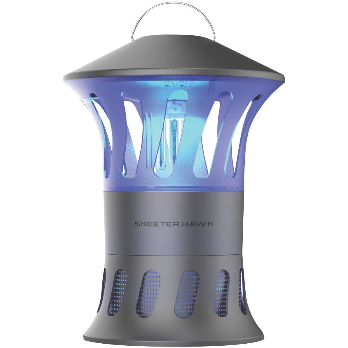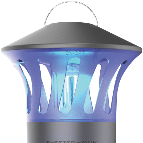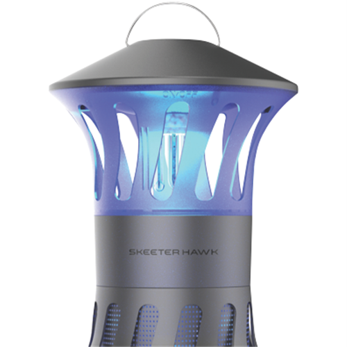 The Large Fly Trap by Skeeter Hawk effectively attracts traps and kills fruit flies gnats drain flies house flies horse flies moths June bugs no-see-ums mosquitoes and thousands of other flying pests. Dual Band LED UV light attracts them while the whisper quiet fan sucks them in where they dehydrate and die. The Large Fly Trap effectively protects larger backyard spaces around pools and large patios. The foldaway hook and long cord allow for versatile placement. For complete protection against mosquitos (which when hungry hunt by detecting the CO2 we breathe out) be sure to wear some form of repellent.For best results place the Large Fly Trap outdoors away from your patio windows and doors in order to attract pesky bugs away from gathering areas. It is recommended that you empty the trap bin weekly during the spring and summer months and monthly during the autumn and winter months.