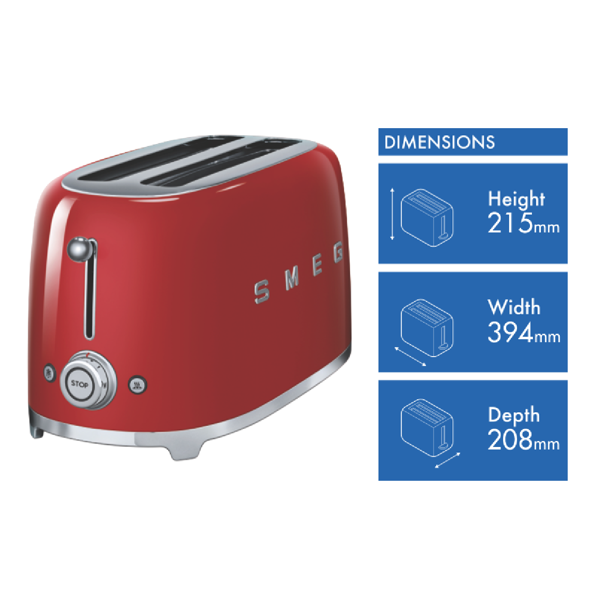 Smeg 50's Style Longslot 4 Slice Toaster Red
