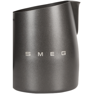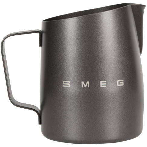 This Smeg stainless steel milk jug MJUG600 in a matte black exterior finish features a specially-designed spout for smooth pouring of frothed milk in conjunction with your Smeg 50's Retro Style Espresso Coffee Machine. Achieve the ultimate finish for cappuccino caffe latte and espresso macchiato with this 650ml milk frothing jug from Smeg.