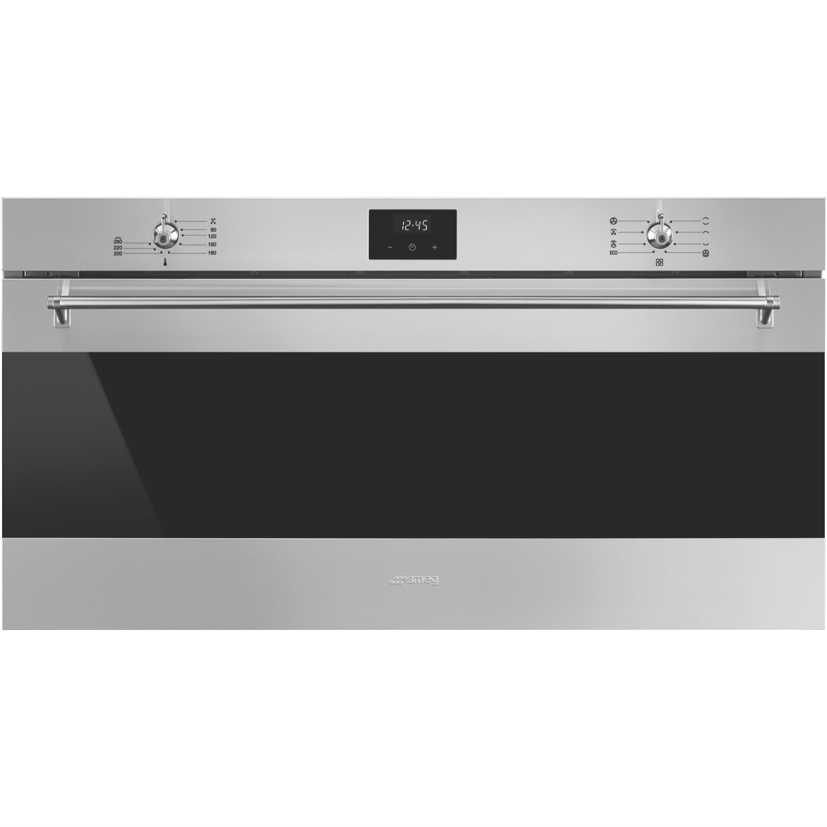 Cook up a storm in your kitchen with the Smeg 90cm Classic Thermoseal Oven. With its stainless steel finish and retro-inspired design this multifunction electric oven will be the highlight of your cooking space. Whip up delicious meals for the whole family with its generous 100L capacity interior. Its 9 functions allow you to bake roast or grill with convection heat for fast even cooking results. The DIGIscreen LED display and control knobs make operation a breeze. Safety features like the child lock provide peace of mind when little helpers are nearby. Smeg s patented Thermoseal technology and triple-glazed cool touch door keep the heat inside the oven and surfaces cooler. The enamel interior resists stains and cleans easily so your oven will look as good as new for years to come. With included accessories like the chrome grill insert and baking tray you ll have everything needed to cook up a storm. Bring retro flair and modern function to your kitchen with the Smeg 90cm Classic Thermoseal Oven. Manufacturer Part Number: SFRA9300TVX.