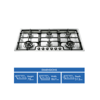 Elevate your cooking experience with this sleek 90cm Smeg gas cooktop. Featuring a premium stainless steel finish this 6 burner cooktop brings high performance and style to your kitchen. At the heart of this cooktop are two ultra-rapid wok burners two semi-rapid burners and two auxiliary burners giving you the flexibility to cook a variety of dishes simultaneously. The two powerful wok burners allow you to achieve searing temperatures for perfect stir fries while the semi-rapid and auxiliary burners are ideal for simmering sauces or keeping food warm. This Smeg cooktop also comes equipped with convenient front knob controls durable cast iron trivets and a flame failure safety device for added peace of mind. With a width of 867mm height of 78mm and depth of 512mm it will fit nicely into your existing benchtop cut-out. Automatic ignition makes lighting the burners easy while the NG and LP gas compatibility gives you the option to switch between gas types with the included conversion kit.Bringing Italian flair and quality into your kitchen this Smeg gas cooktop pairs beautiful design with high performance. The manufacturer's part number for this product is PGA96. Take a closer look at this cooktop to enhance your cooking experience.