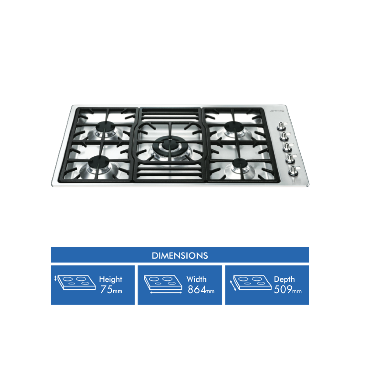 Smeg 90cm Gas Cooktop S/S