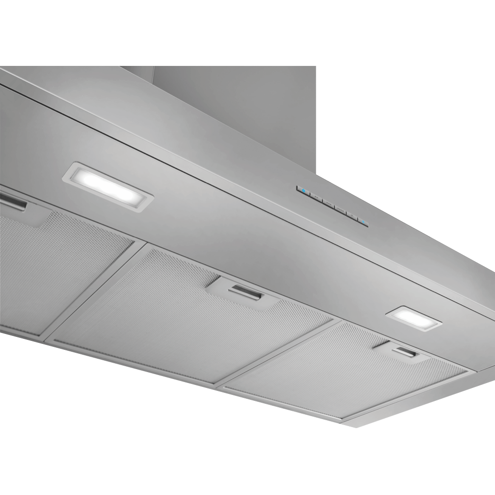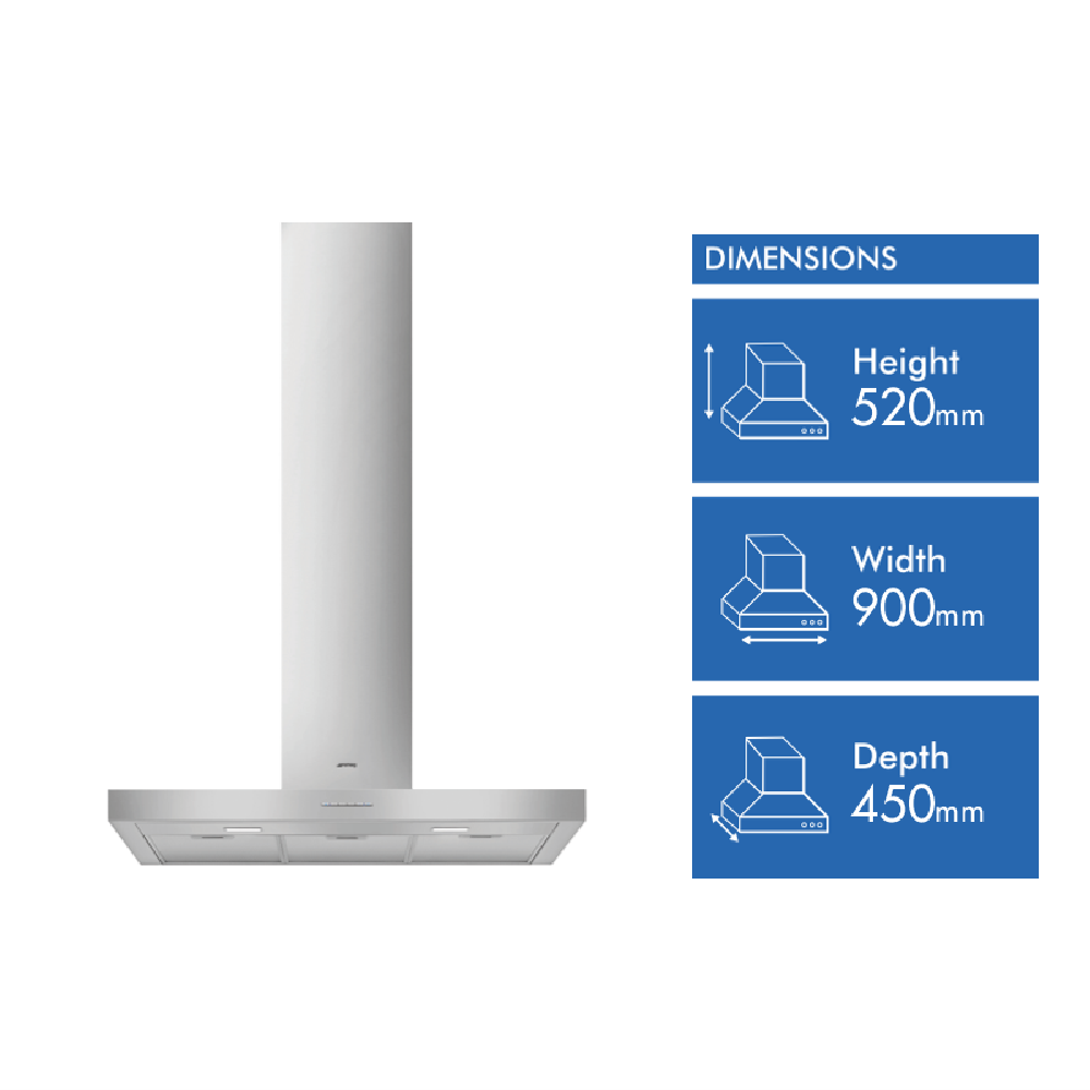 Transform your kitchen with the sleek modern Smeg 90cm Wallmount T-Shape Rangehood. This stainless steel canopy rangehood makes a stylish statement while powerfully clearing cooking odors and steam from the air. With a generous 90cm width three fan speeds plus intensive mode and decibel levels from 47 to 71 this rangehood offers flexible and quiet performance for open kitchens. The integrated LED lights illuminate your cooktop brilliantly while the dishwasher-safe aluminum grease filters trap vapors and are simple to clean. With the option to duct outdoors or recirculate air this rangehood adapts to your kitchen setup. The easy push button controls and 2 year warranty provide reliable fuss-free operation. Bring contemporary style and robust extraction power to your cooking space with the Smeg 90cm Wallmount T-Shape Rangehood. The manufacturer's part number for this product is KBTAU900XE.
