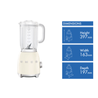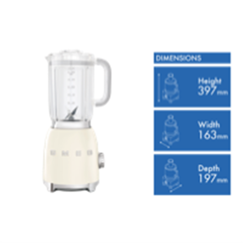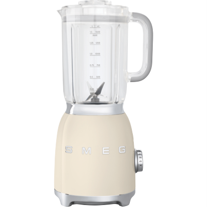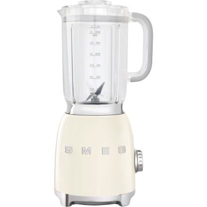 Featuring the iconic Smeg 50's style silhouette and backed by high tech performance for blending precision this award-winning Smeg 50's Retro Style Blender BLF01CRAU pays homage to a bygone era in one stylish benchtop appliance worthy of showing off. A powerful 800-watt motor with clever Smooth Start function accelerates smoothly to reach your selected speed; avoiding splashes and uneven blending of ingredients. This cream-coloured Smeg blender has four speeds with three pre-set programs including Smoothie Ice Crush and Pulse. You don't need to be shy with ingredients with a super-strong 1.5 litre Tritan BPA-free jug and transparent lid so you can keep an eye inside. Plus heavy duty stainless steel dual blades are removable for easy cleaning. It has a die-cast enamel coated body and backlit chrome control knob for effortless signature Italian design. Complete with motor overload protection safety switch off built-in cord storage and anti-sleep feet this Smeg retro blender is just as much about form as it is function.